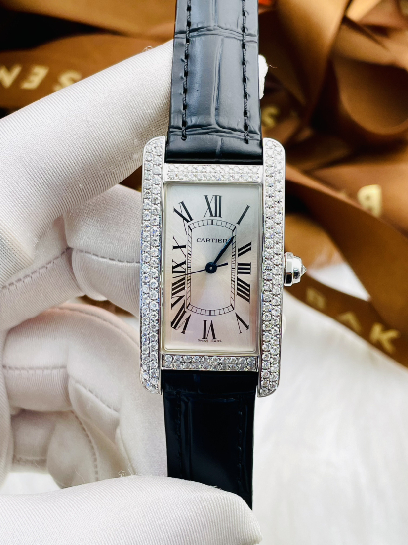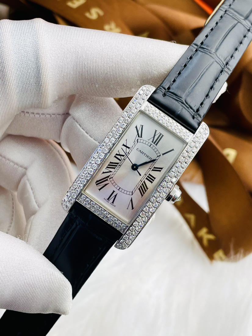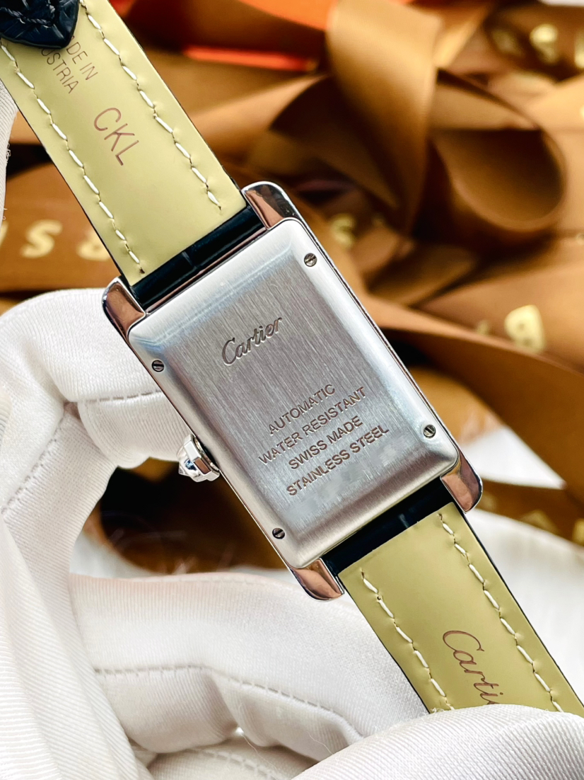 卡地亚坦克系列精钢后镶钻自动机械女士腕表