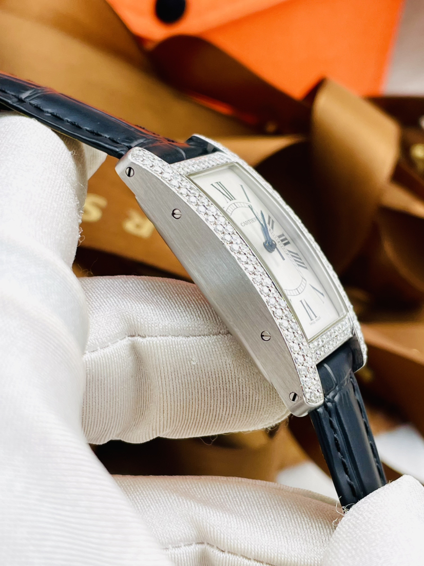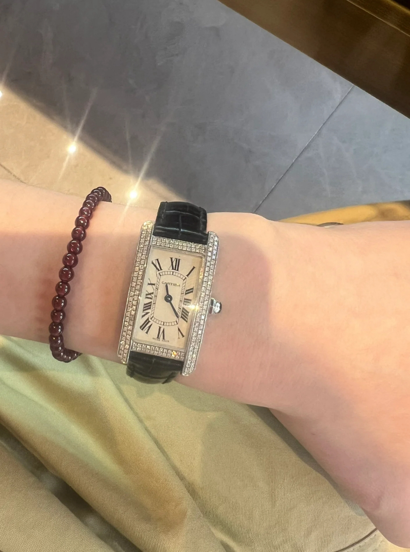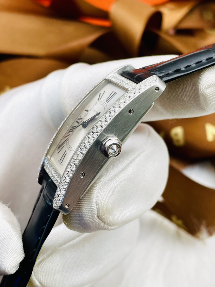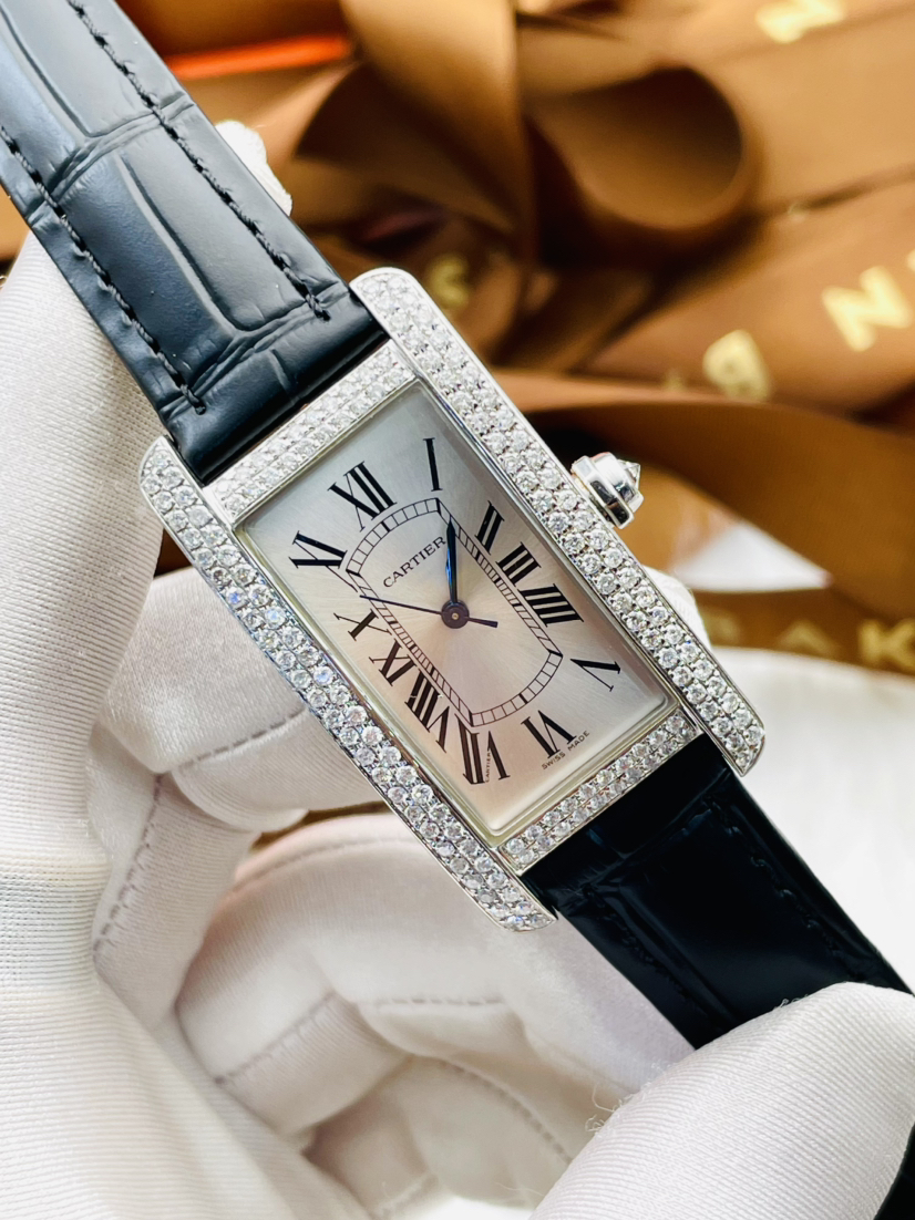 卡地亚坦克系列精钢后镶钻自动机械女士腕表