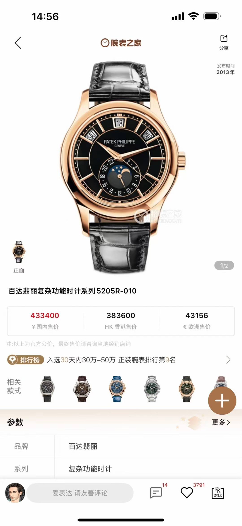 百达翡丽/Patek Philippe 复杂功能时计 5205R-010 自动机械机芯 18k玫瑰金 40毫米 附件:极品全套 专柜价433400