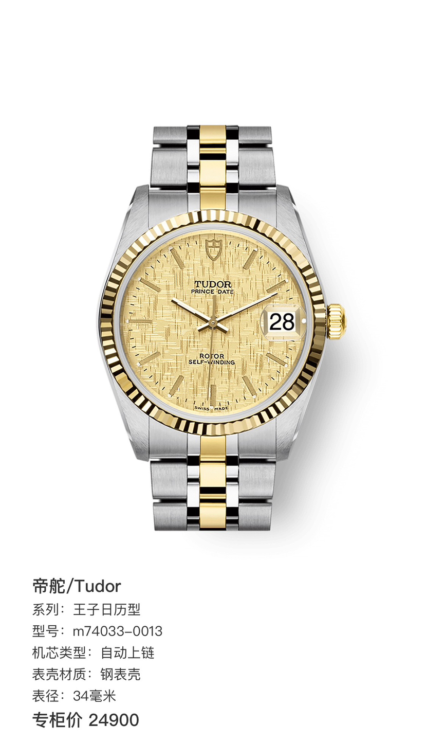 帝舵/Tudor 王子日历型 m74033-0013 自动上链 钢表壳 34毫米 附件:单表 专柜价24900