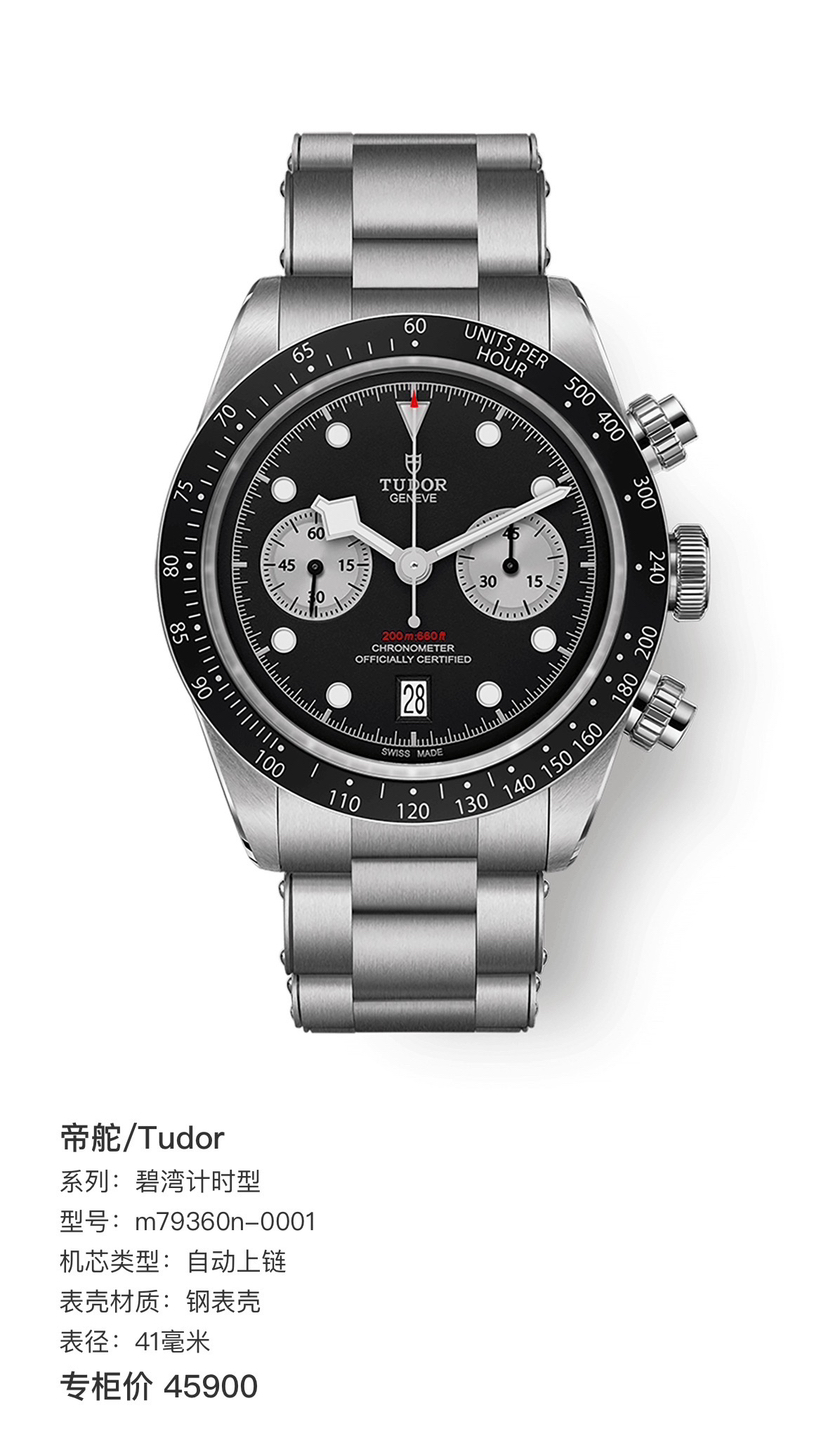 帝舵 碧湾系列 计时型 M79360N-0001 41MM表径黄金尺寸 双眼熊猫盘 夜光指针刻度大热门爆款 2023年带票极品成色 公价45900 现货特价带走!~