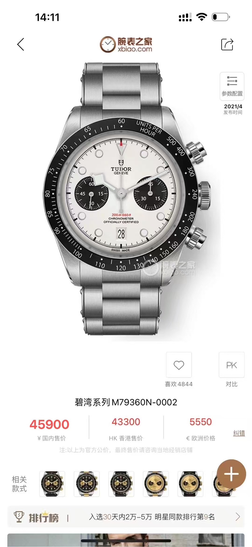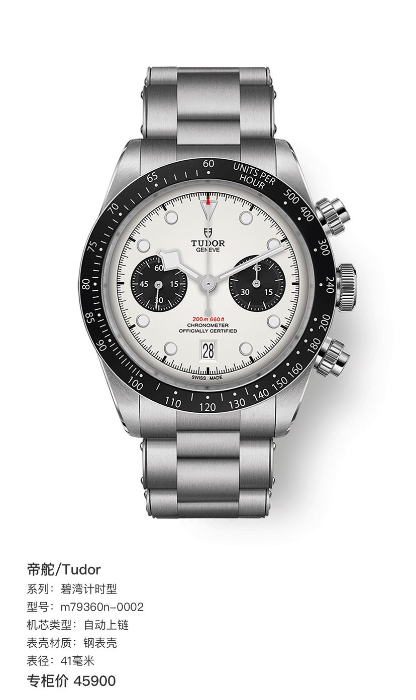 帝舵 碧湾系列 M79360N-0002,热门款帝舵白熊猫,41毫米表径,磨砂钢材质,公价45900 国行全新6月28日卡 现货秒发~