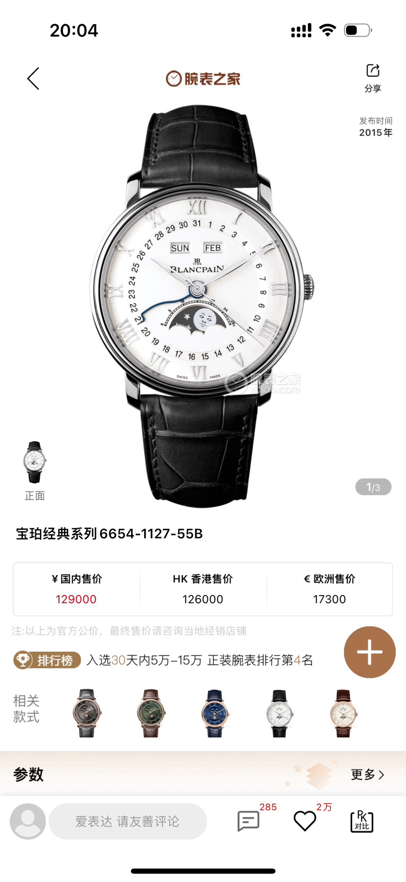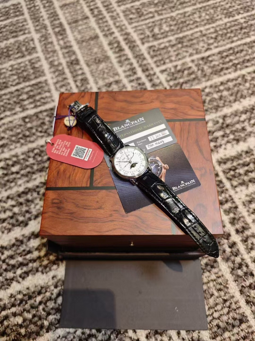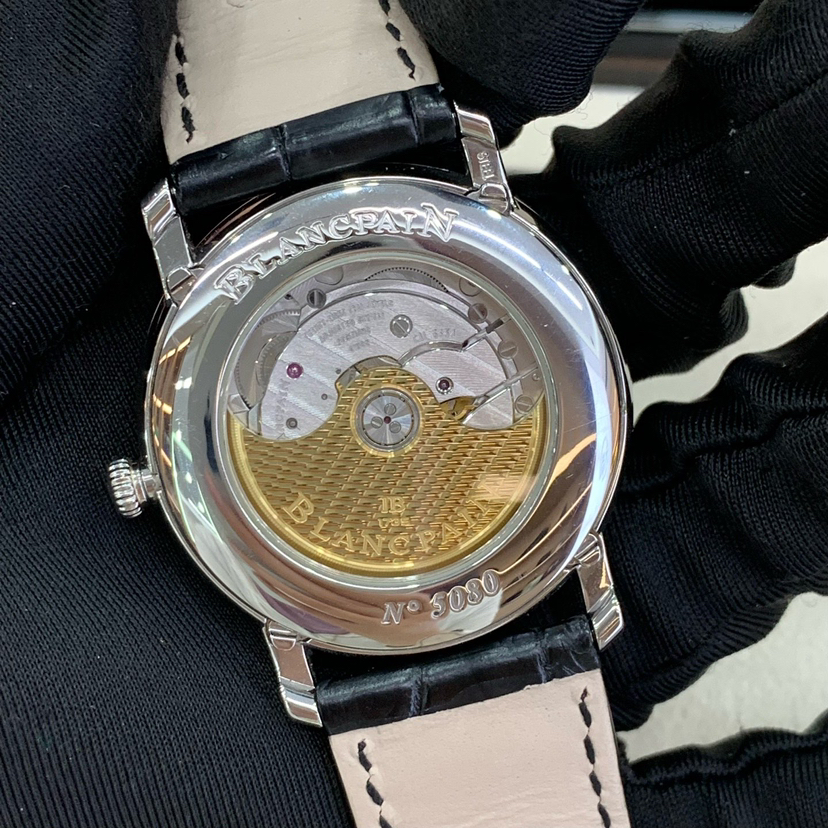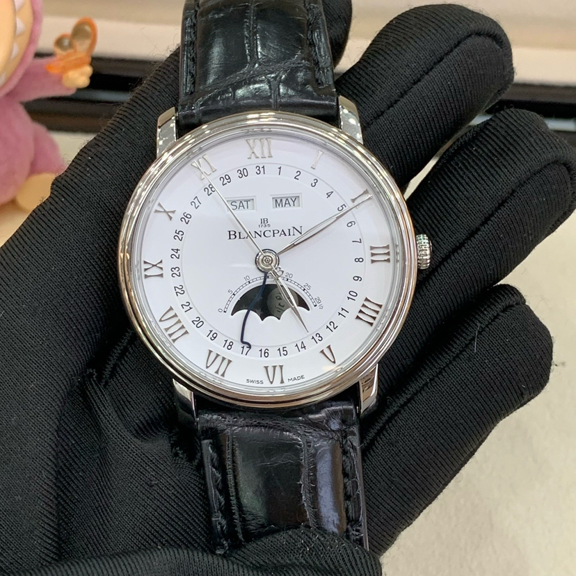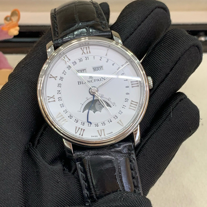BLANCPAIN/宝珀 经典系列6654-1127-55B VILLERET 自动机械机芯 三显 月相日显 男表 白色表盘 精钢表壳 鳄鱼皮表带 背透 折叠扣 表盘直径40mm 23年全套 带云鱼报告 公价129000元 现货好价!