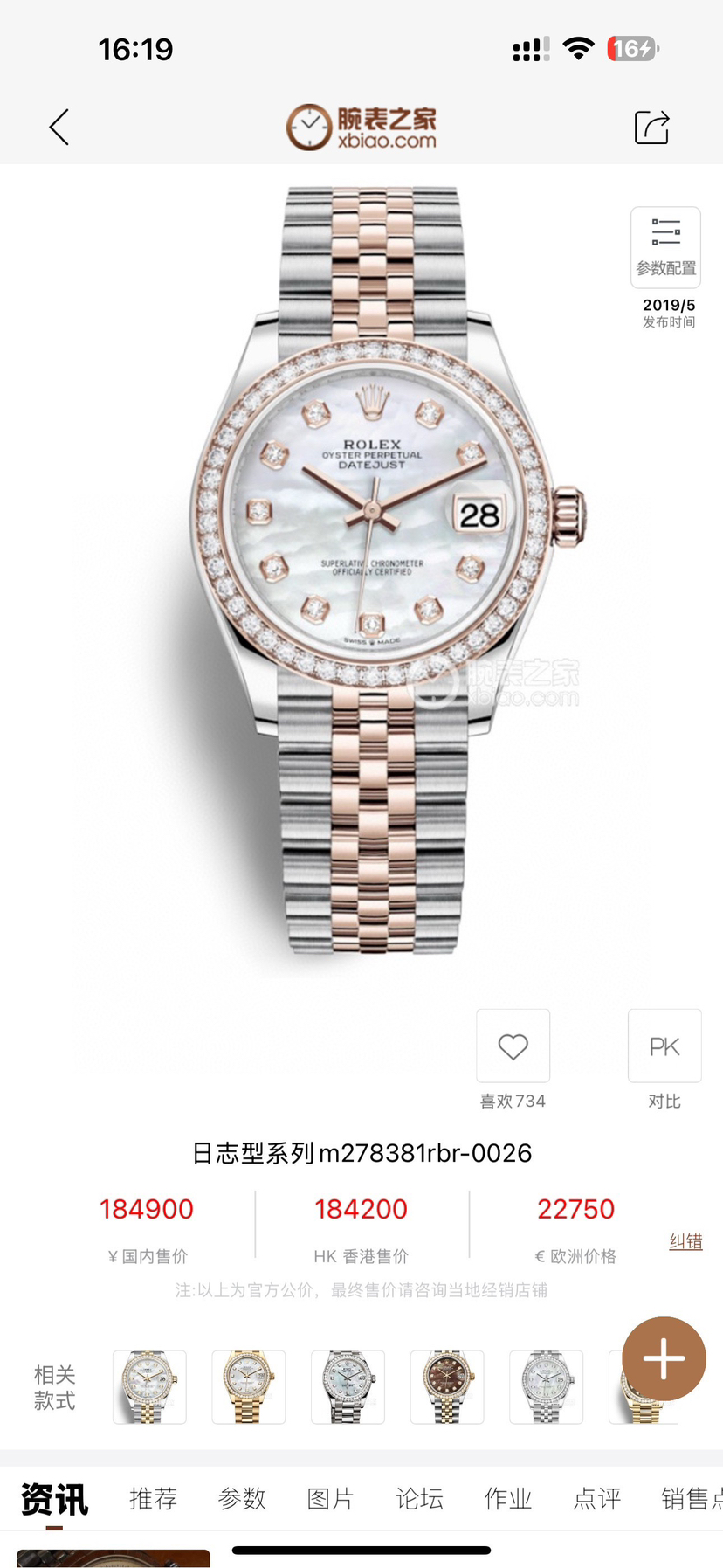 劳力士日志型M278381RBR-0026自动机械女性
