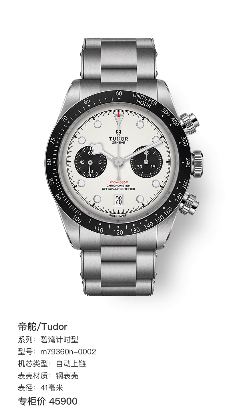 帝舵/Tudor 碧湾计时型 m79360n-0002 自动上链 钢表壳 41毫米 专柜价45900