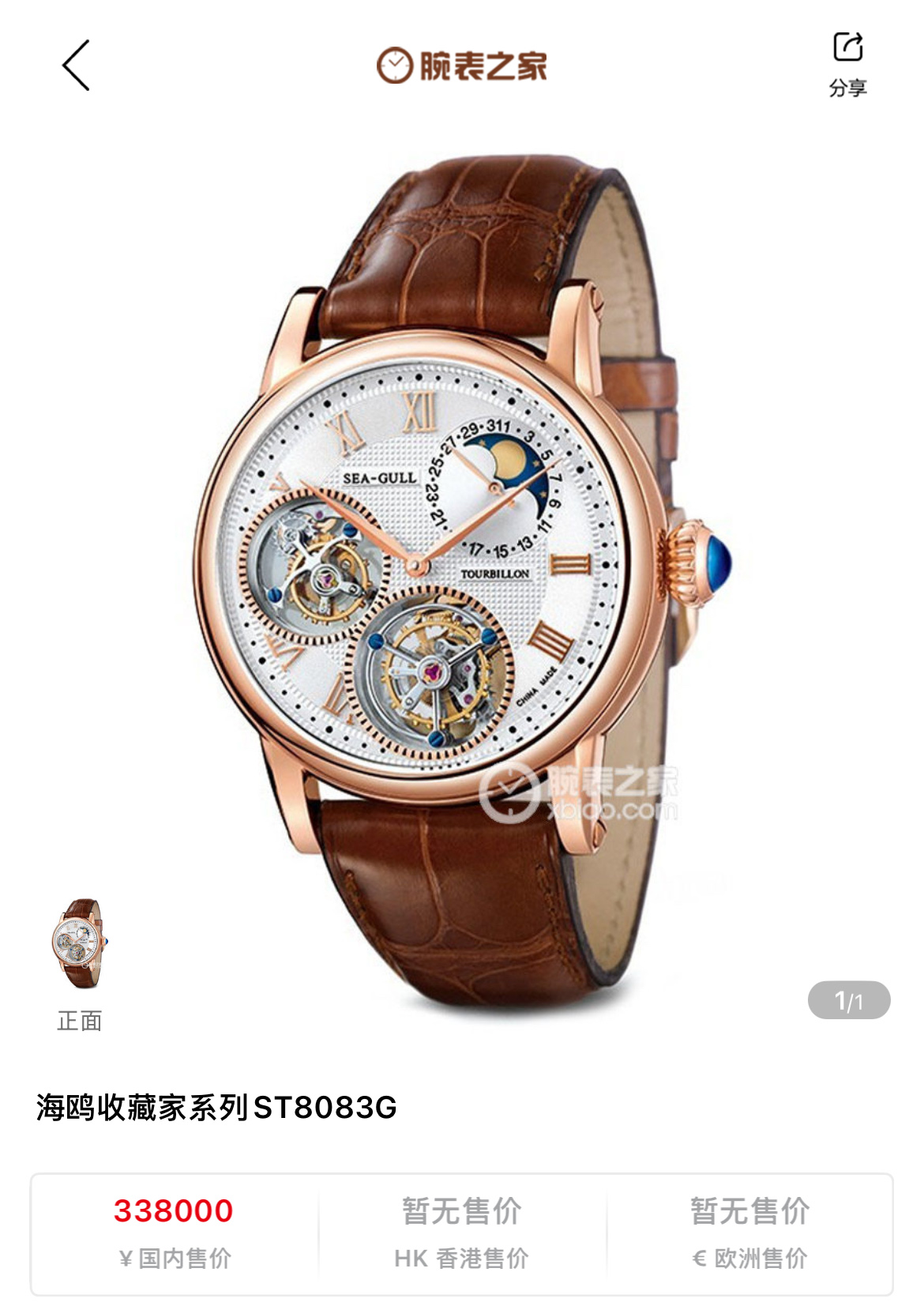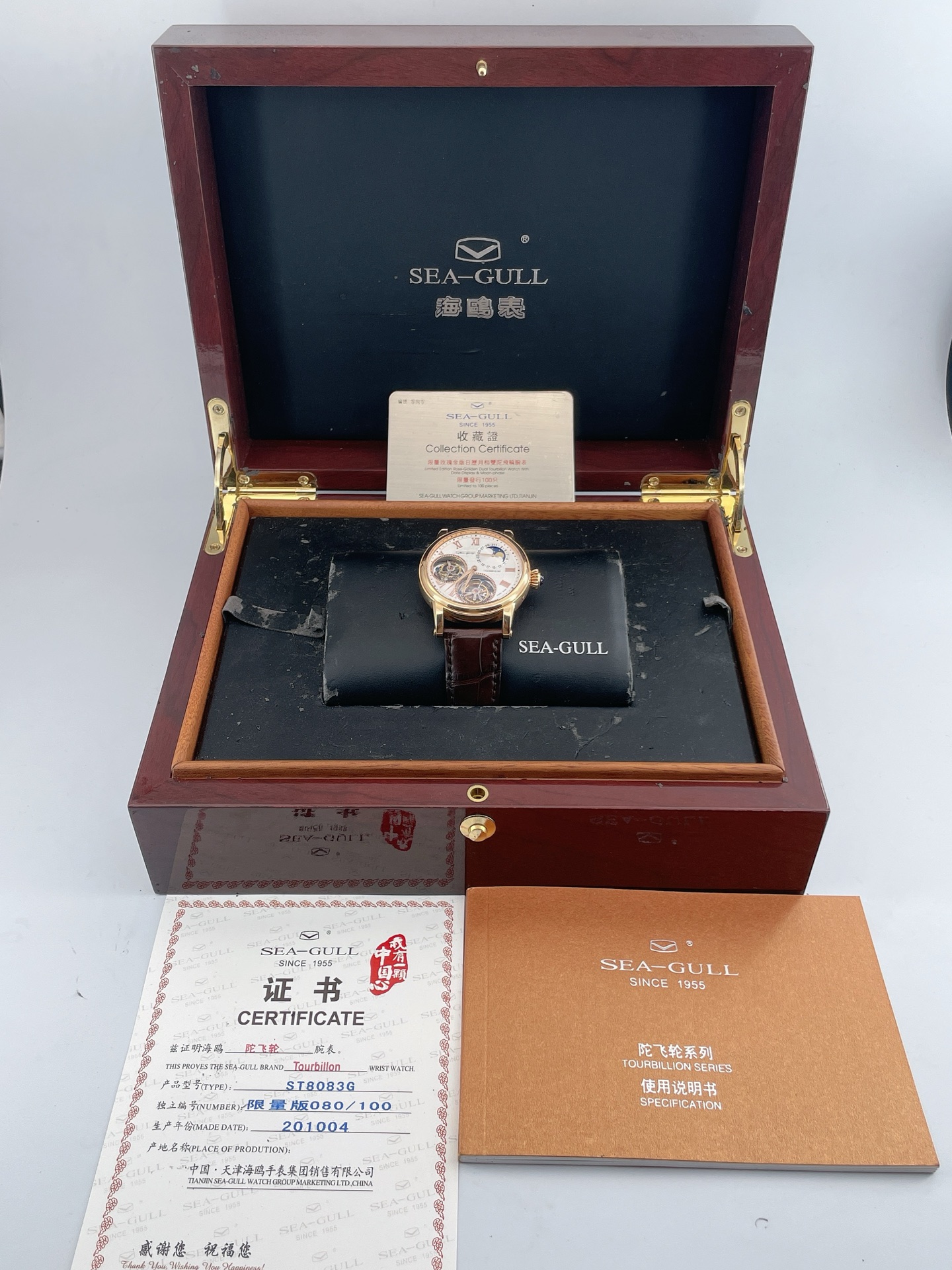 海鸥 博物馆 型号ST8083GC 手动机械 18k玫瑰金 42mm表径 10年全套 公价338000 现好价~