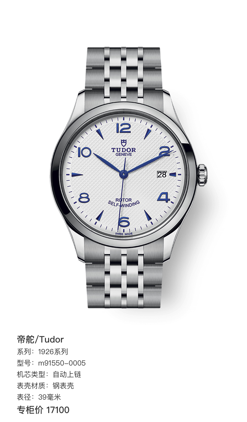 帝舵/Tudor 1926系列 m91550-0005 自动上链 钢表壳 39毫米 专柜价17100~