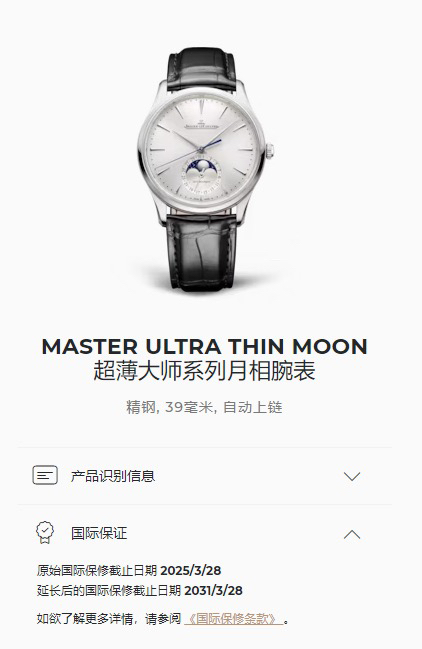 积家/Jaeger 超薄大师系列腕表 Q1368430钢月相,自动上链,精钢 ,表径39毫米,专柜价88000,2023年单表延保~