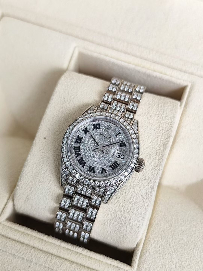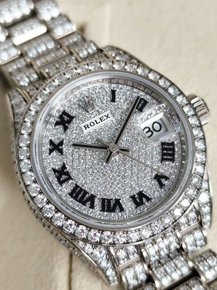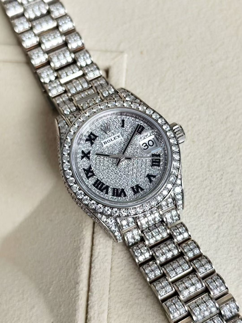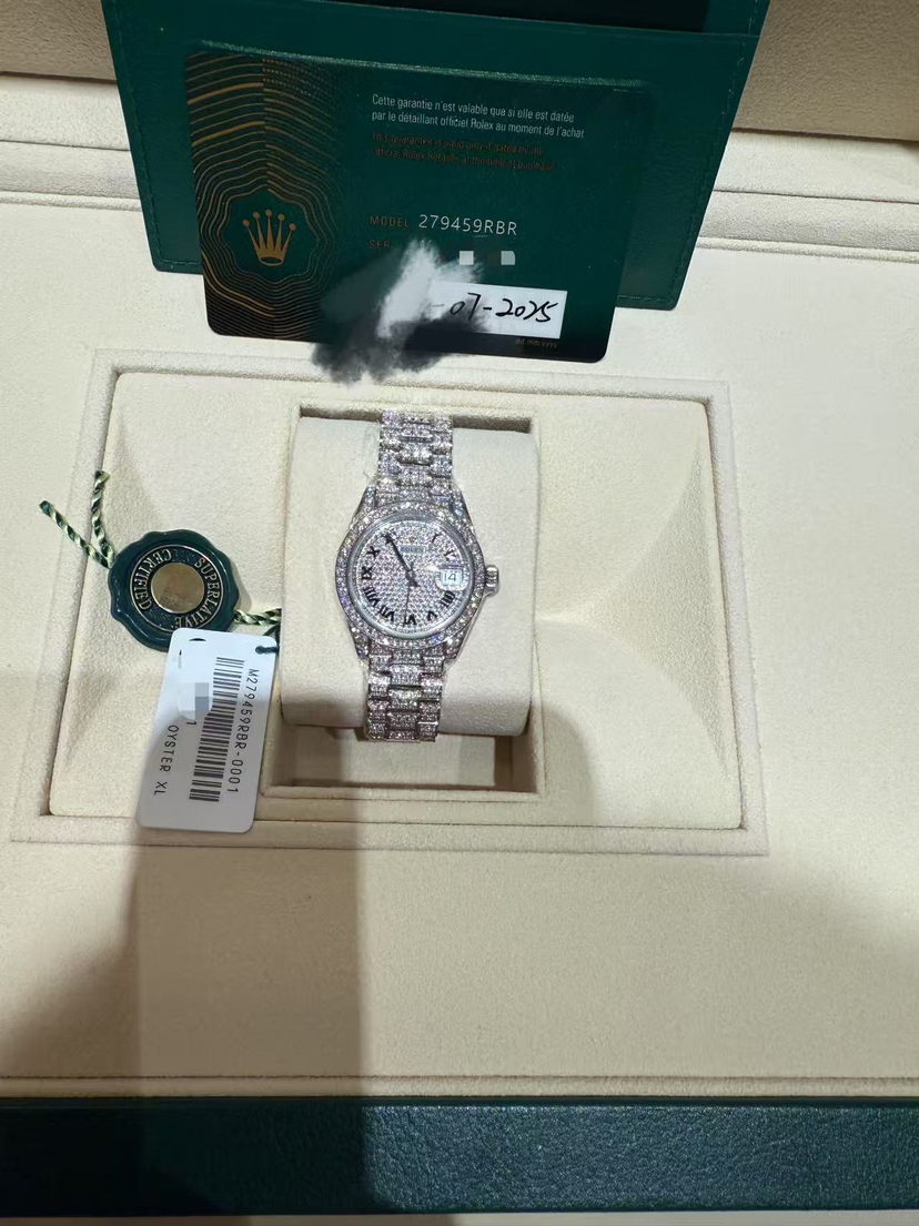 【全新】7月卡劳力士/Rolex 女装日志型 m279459rbr-0001 自动上链 18K白色黄金,表壳两侧及表耳镶钻石 28毫米 专柜价1326200~