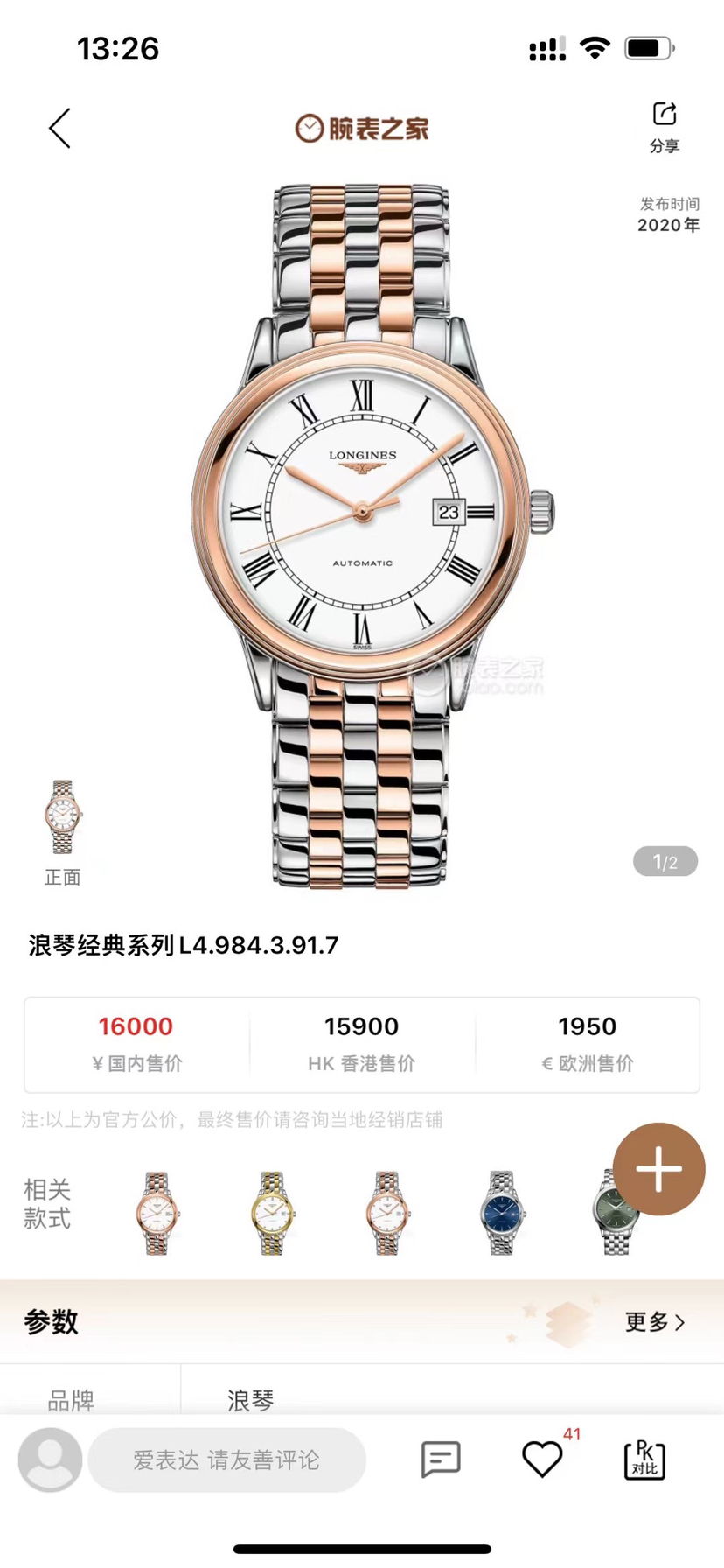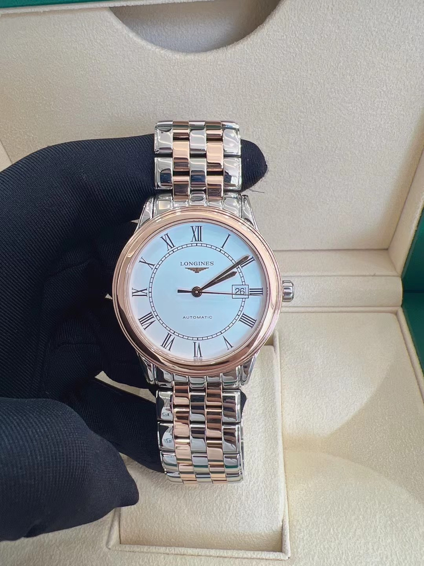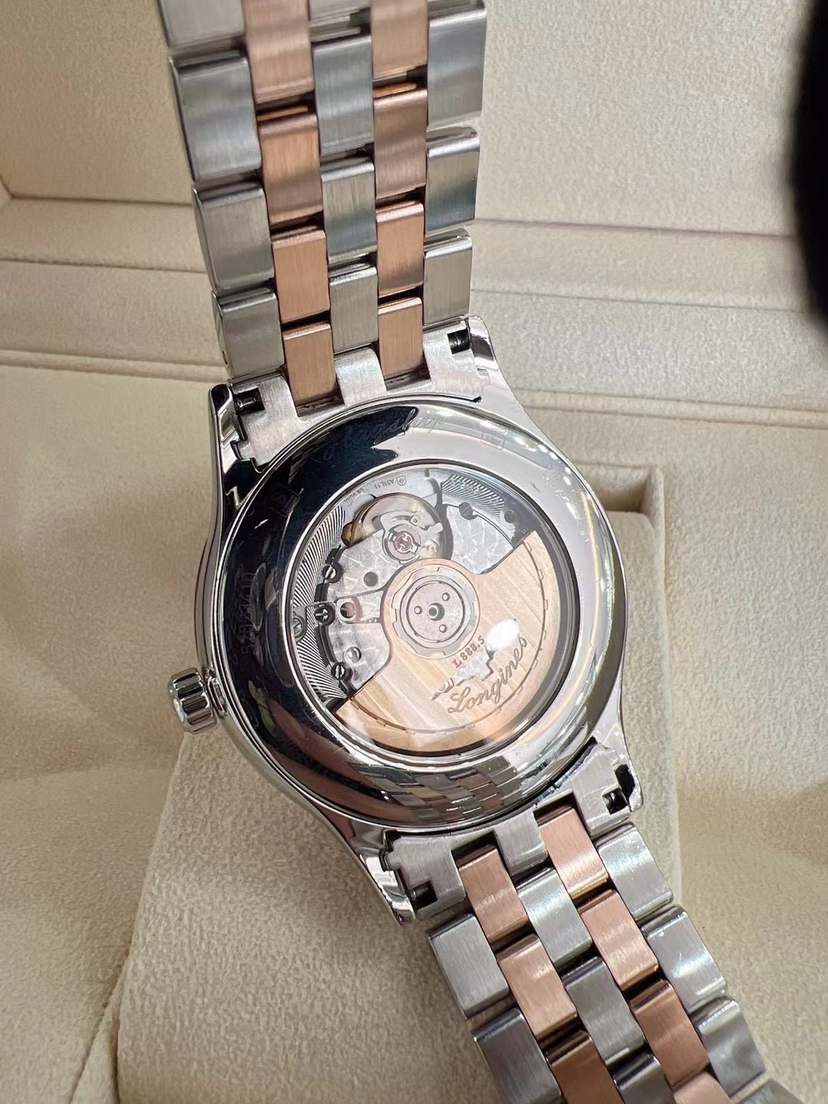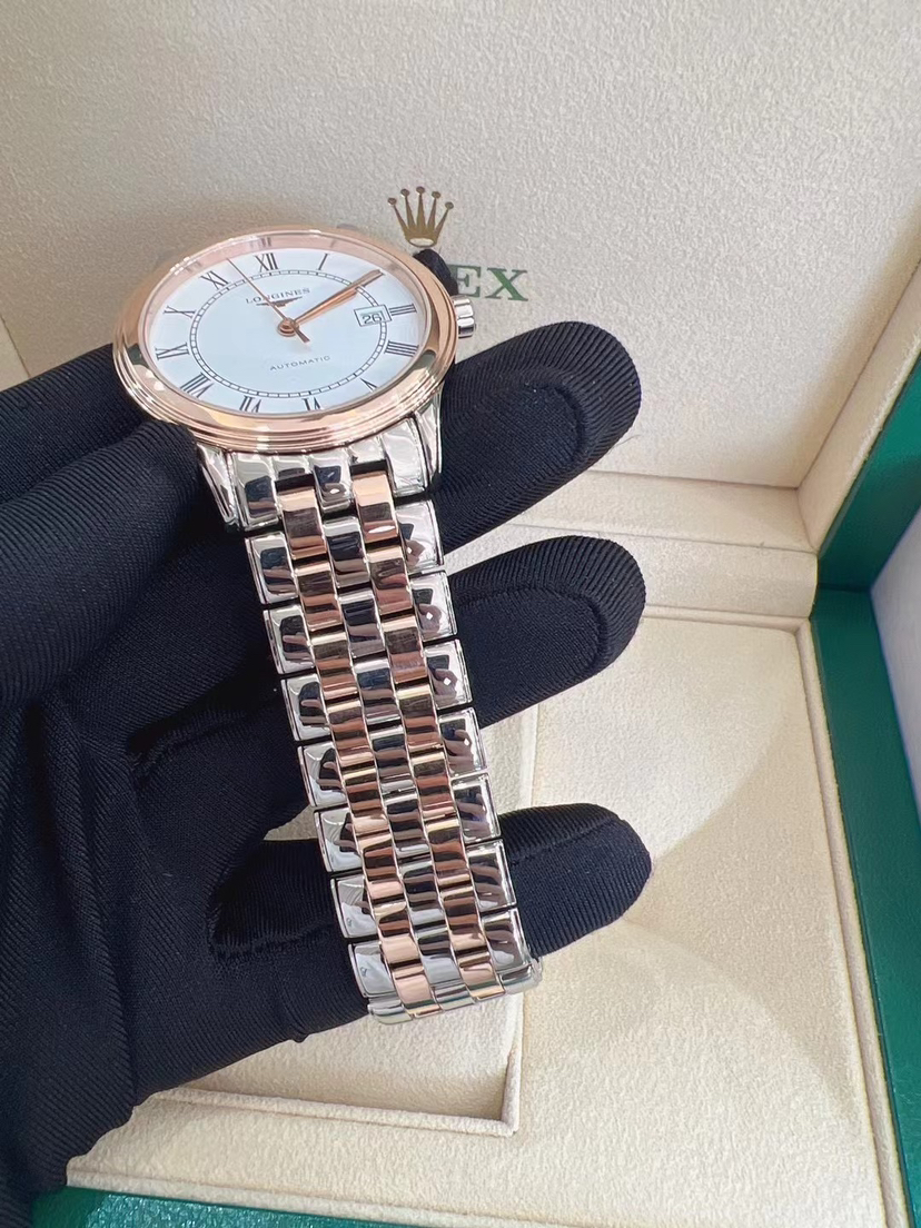 浪琴军旗L4.984.3.91.7机械男款,40毫米表径,最新款888.5机芯,白盘罗马刻度玫瑰间金钢带款,公价16000,现货好价几千块