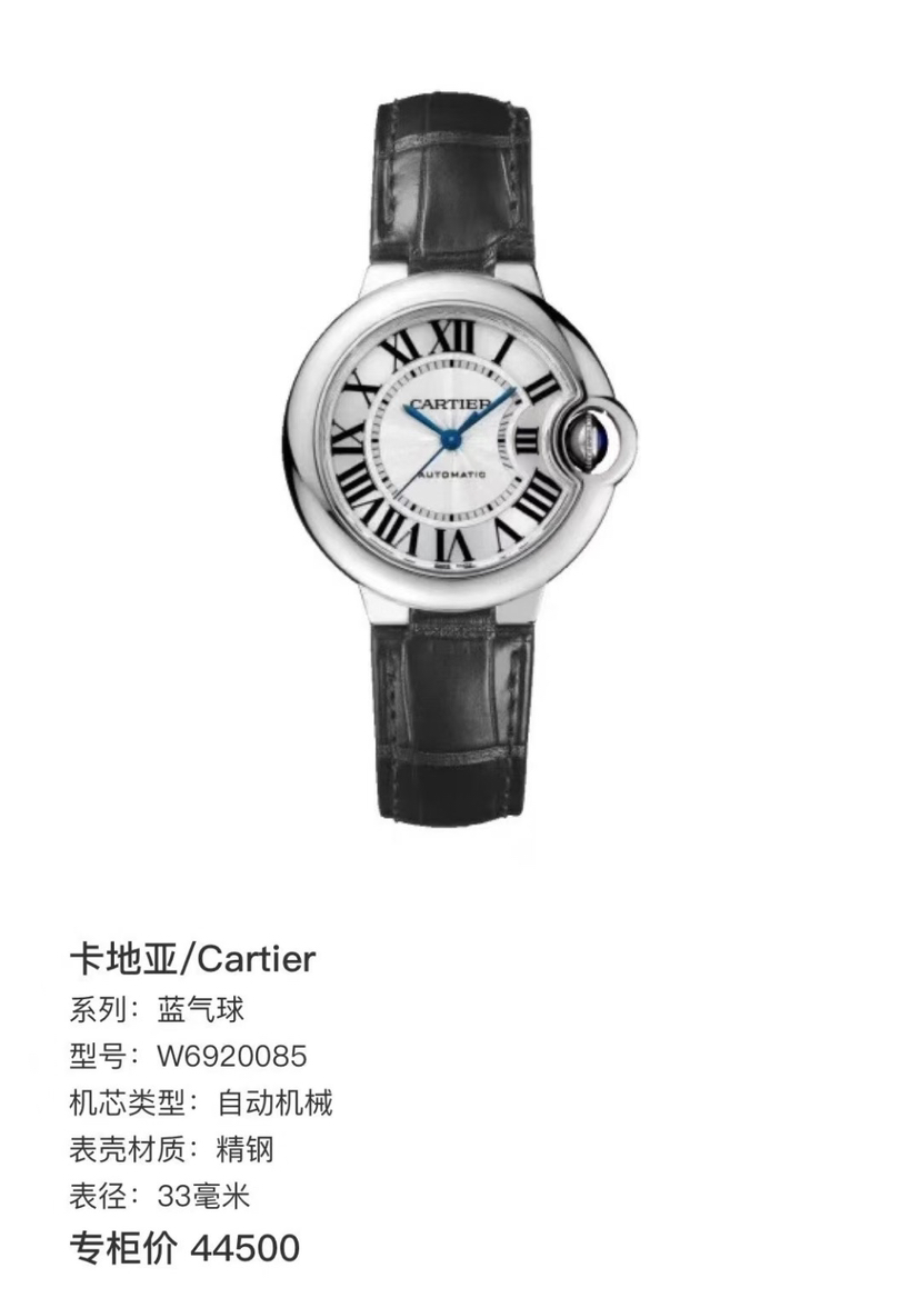 卡地亚蓝气球BALLON BLANCW6920085机械女性