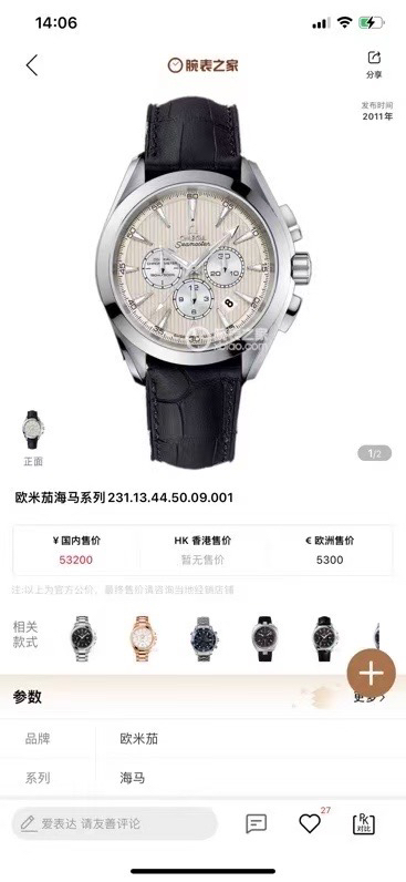 欧米茄/Omega 海马 231.13.44.50.09.001 自动机械 精钢 44毫米 专柜价53200