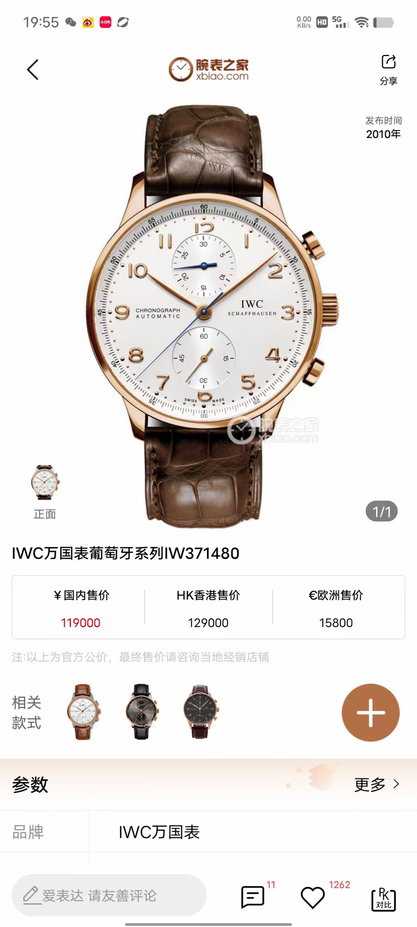 万国 葡萄牙系列IW371480,全套2020年延保8年到2028年 表径41mm,玫瑰金,自动机械计时。公价119000,现货好价出