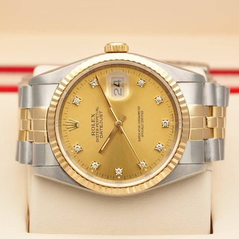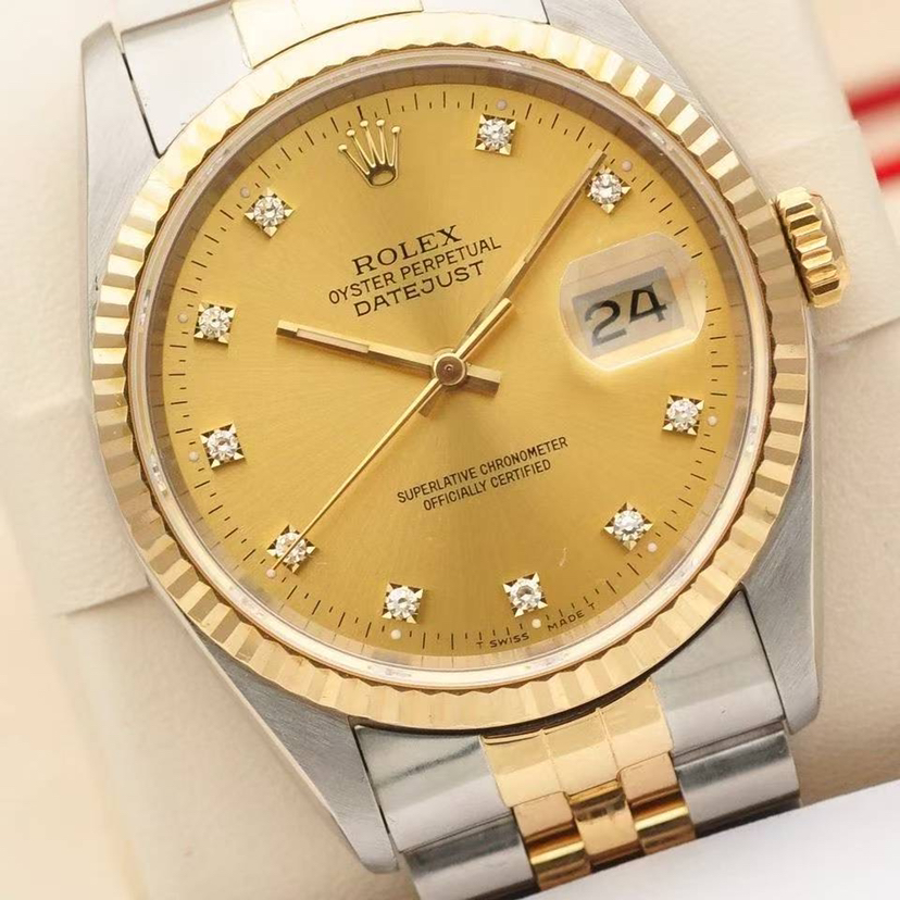 劳力士日志型系列男表16233、表径36mm、自动机械、18K黄金+精钢材质,参考116233原价104000 现货好价出