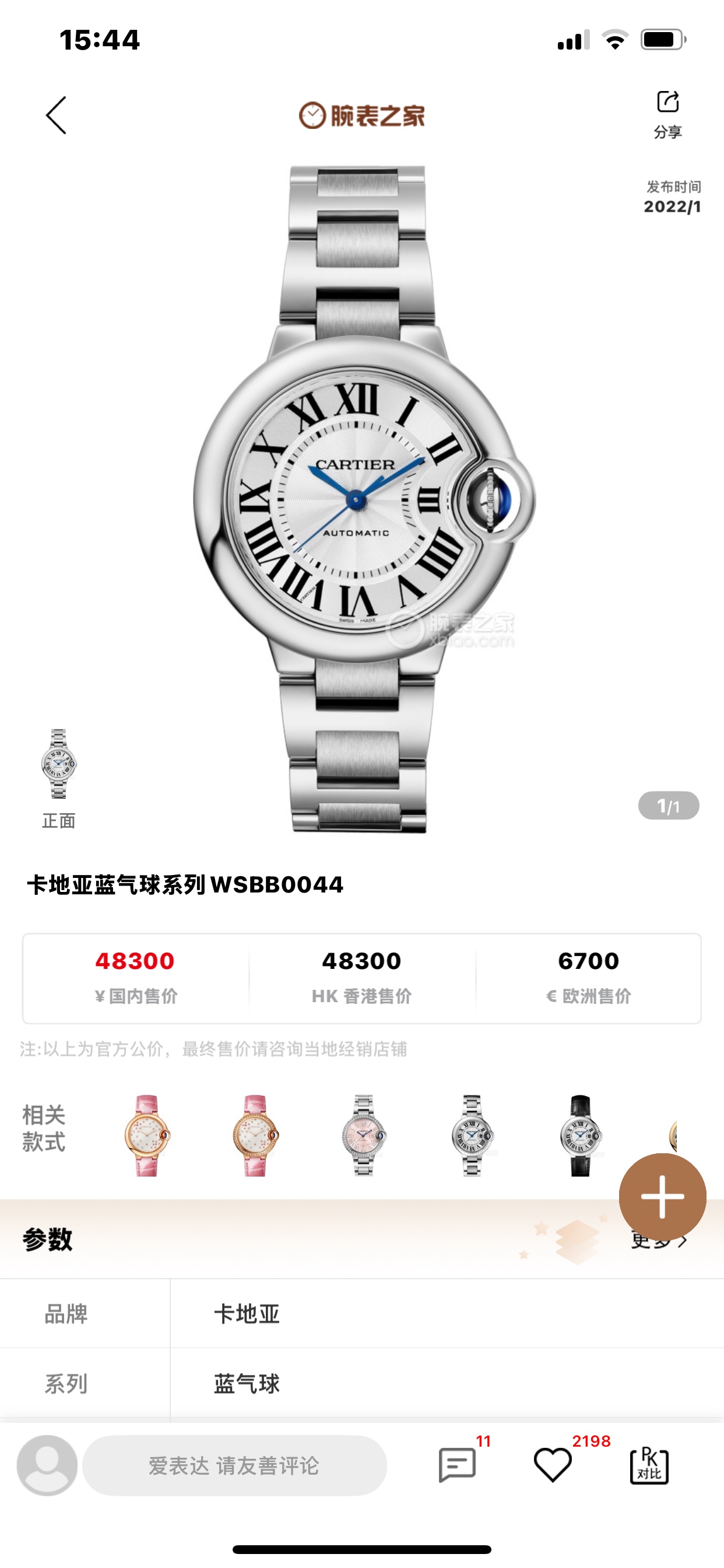 卡地亚蓝气球BALLON BLANCWSBB0044机械女性