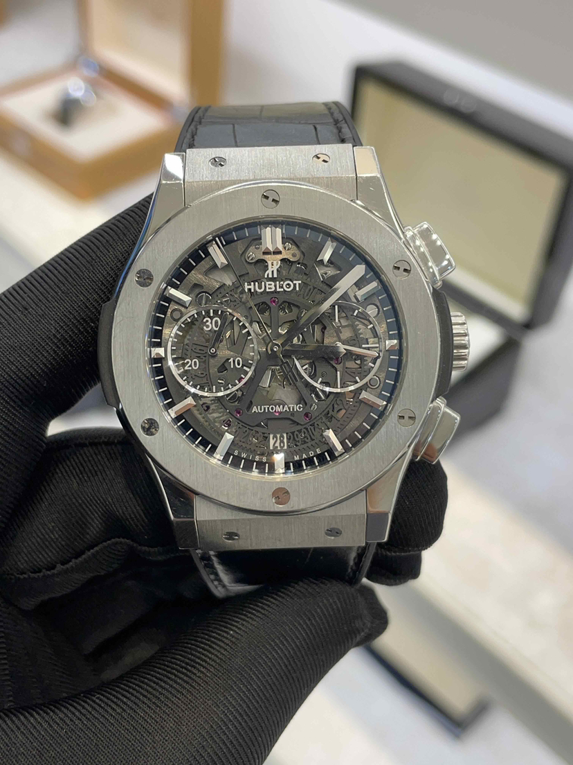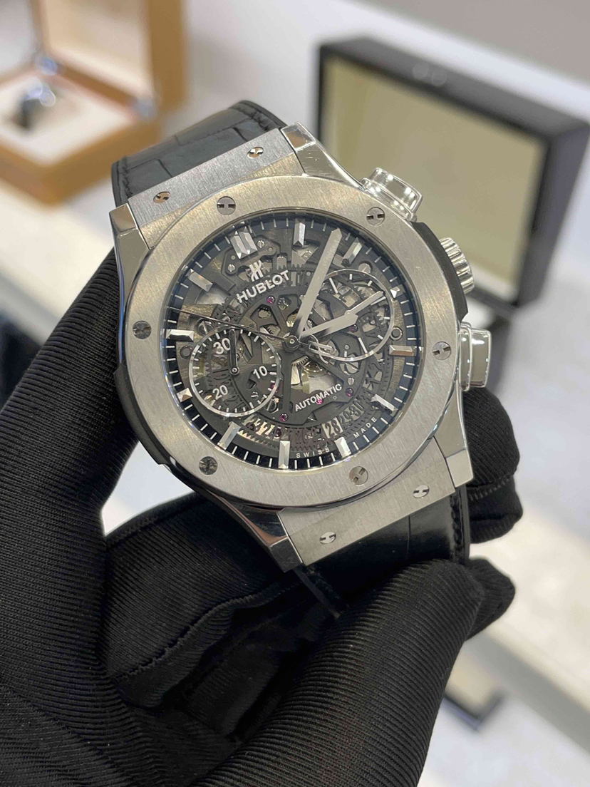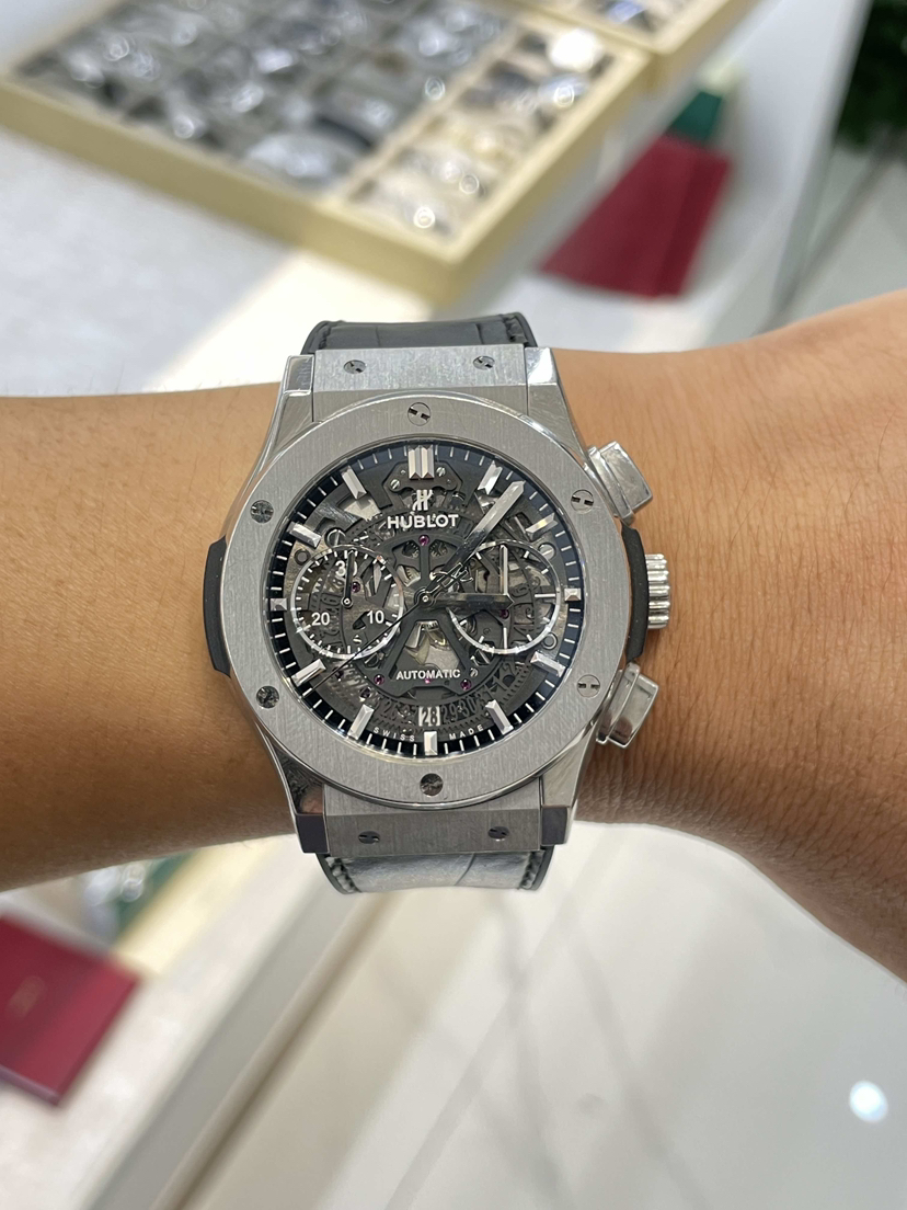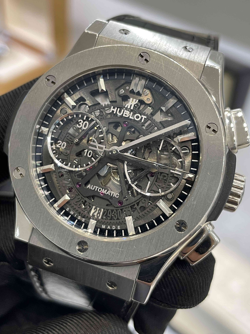 宇舶/Hublot 经典融合 525.NX.0170.LR 自动机械 抛光及缎面钛金属,垂直缎面钛金属附6颗H形钛金属螺丝 45毫米 专柜价112900宇舶-经典融合,525.NX.0170.LR。单表无配件。45毫米钛合金自动机械计时,公价117400