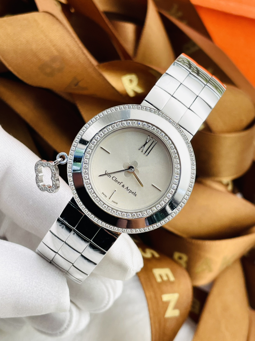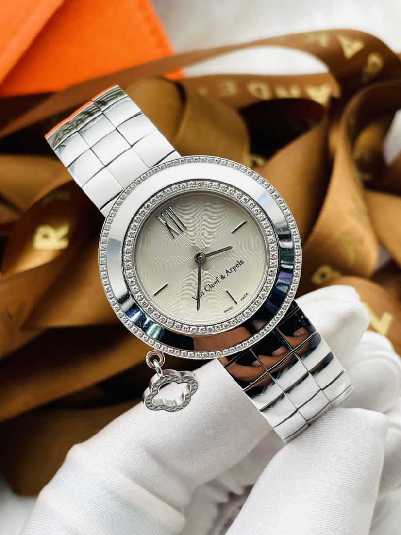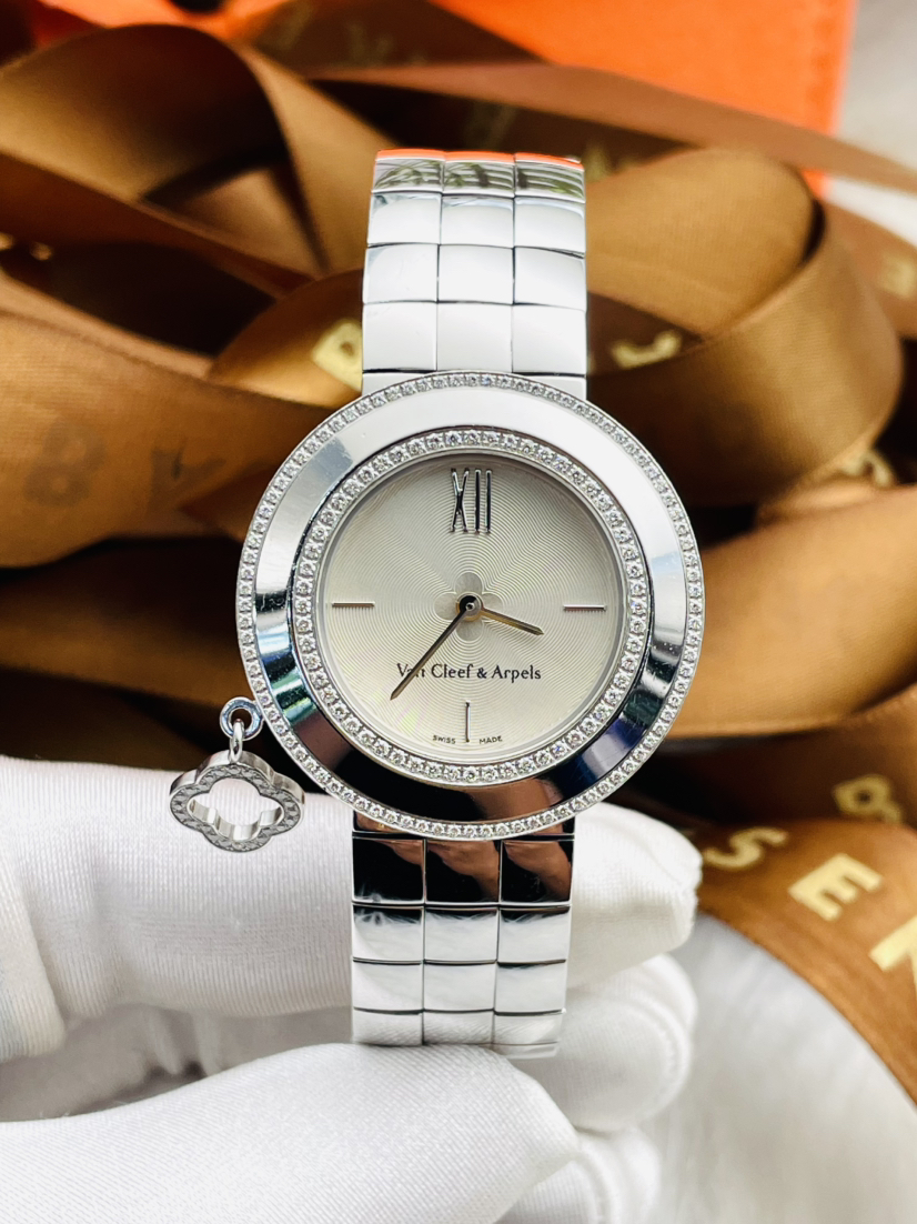 梵克雅宝CHARMS系列18K白金原镶钻石英女表