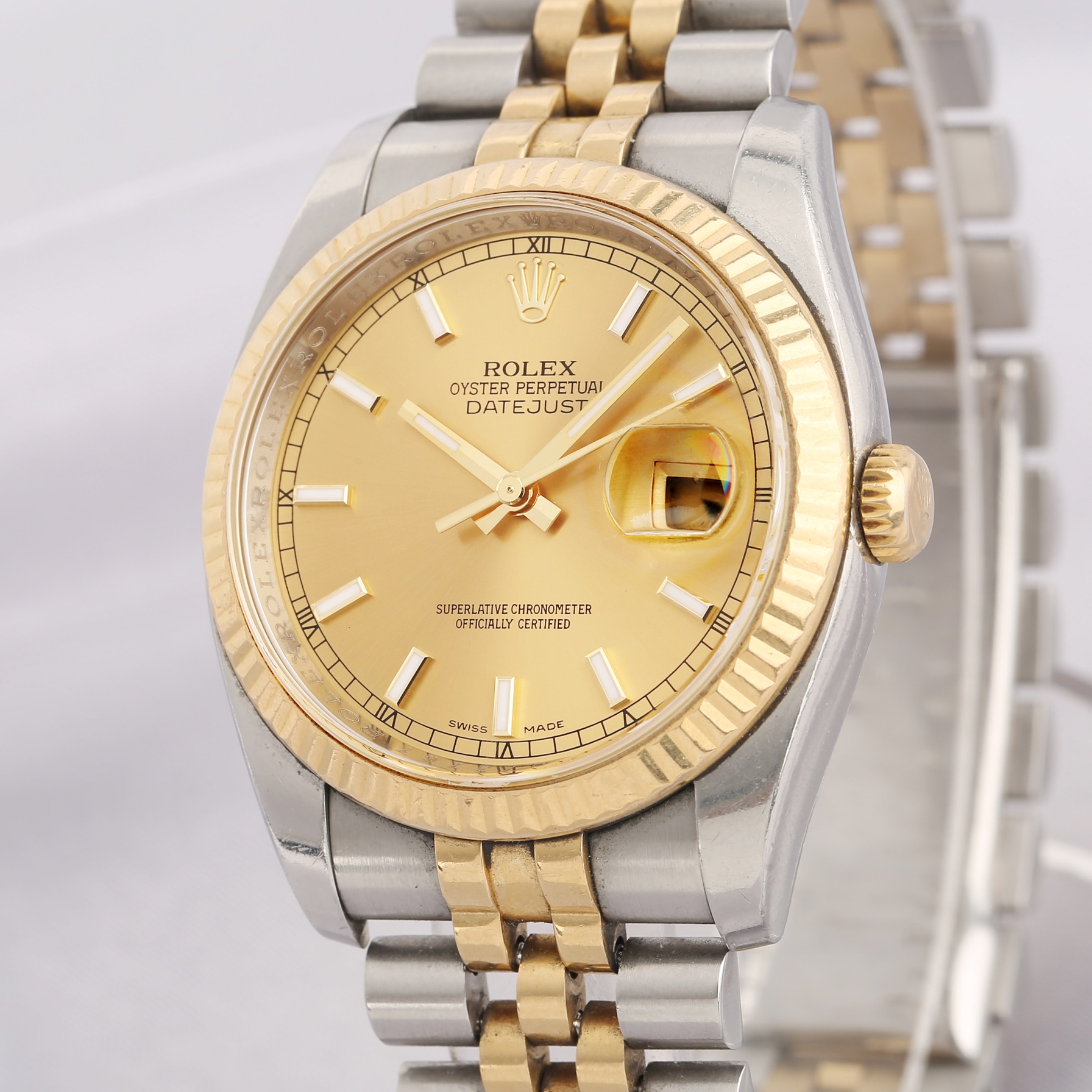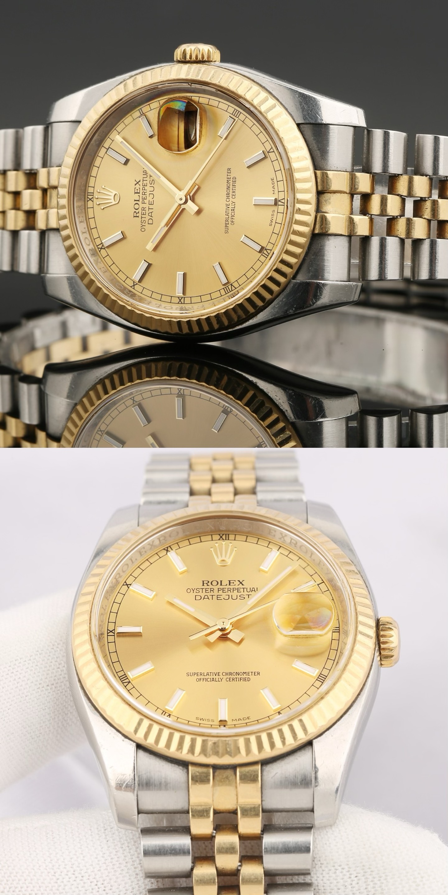 表壳材质:18k黄金/精钢,三角坑纹外圈