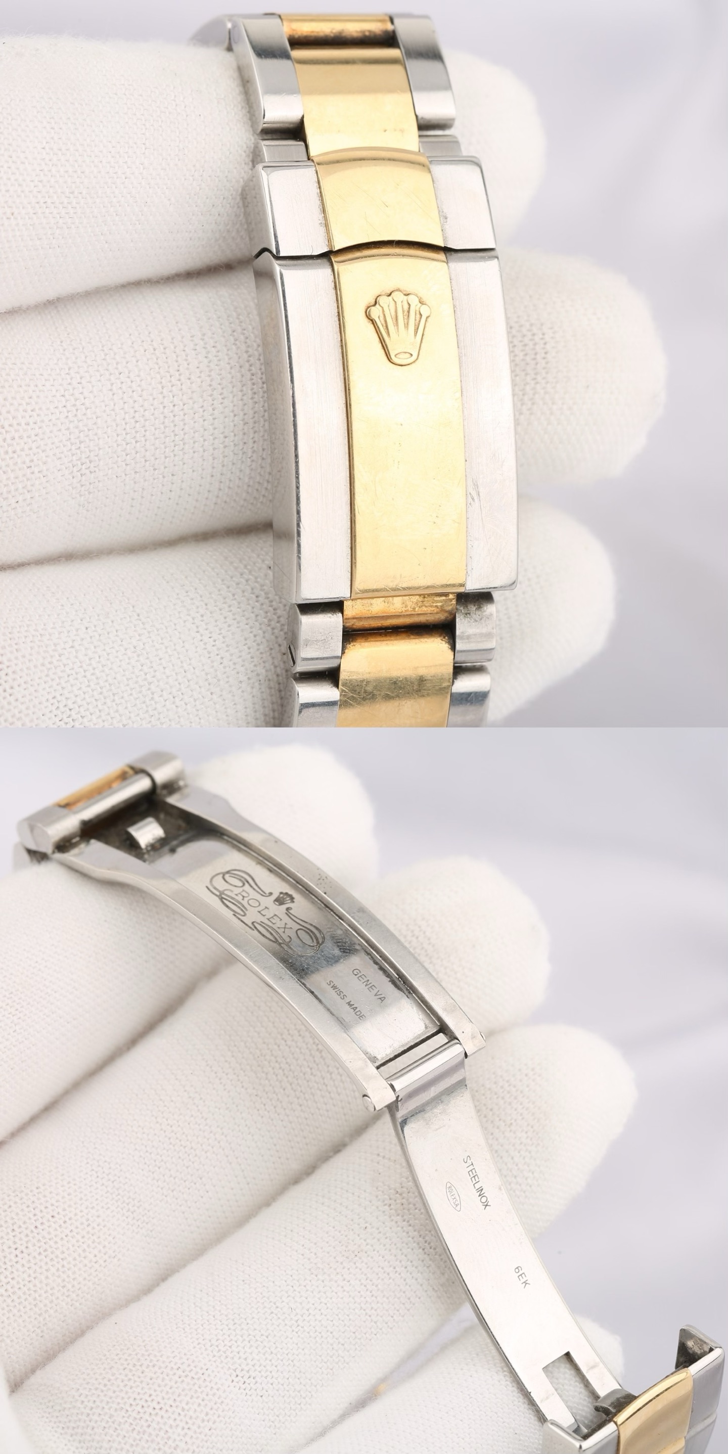 表带/表扣材质:黄金钢(蚝式钢与18k黄金)