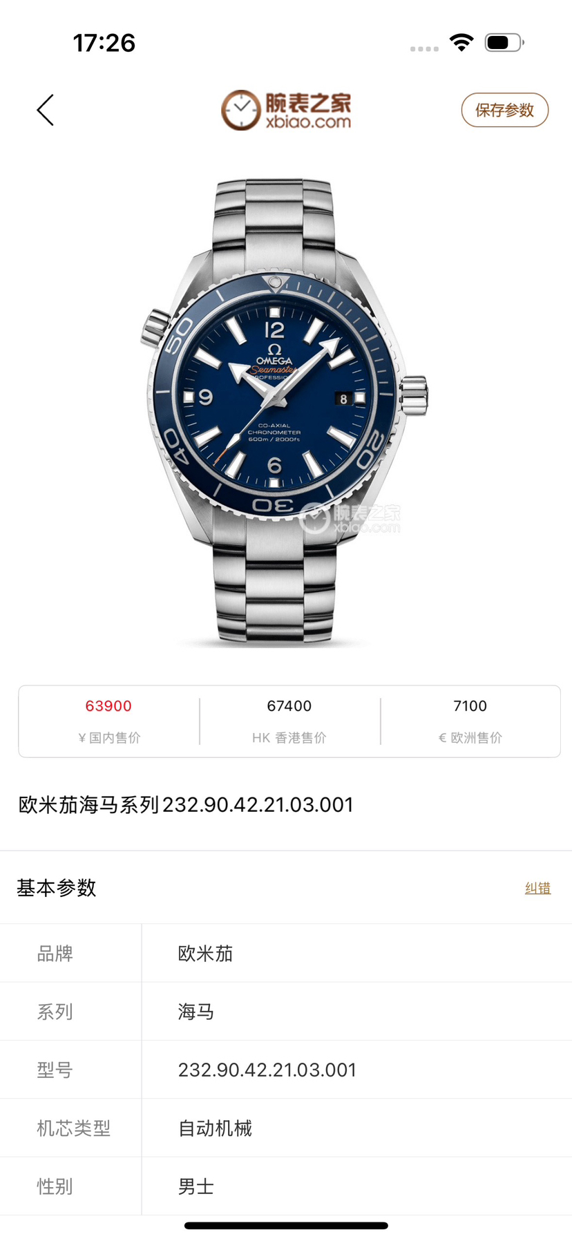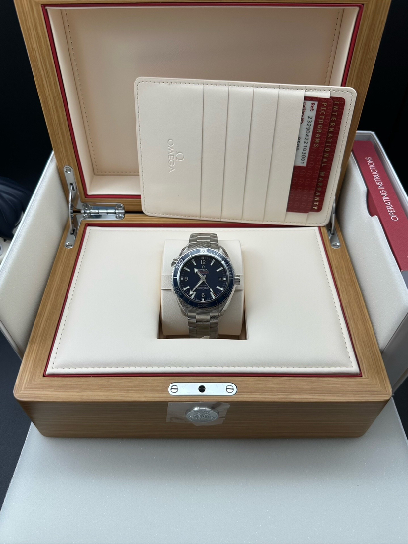 欧米茄 海马600型号232.90.42.21.03.001,42mm自动机械腕表,搭载欧米茄8500同轴机芯;主体采用钛金属材质,外圈为蓝色单向旋转陶瓷圈 全新带膜空白日期卡全套未使用品!公价63900元,现货好价带走!~