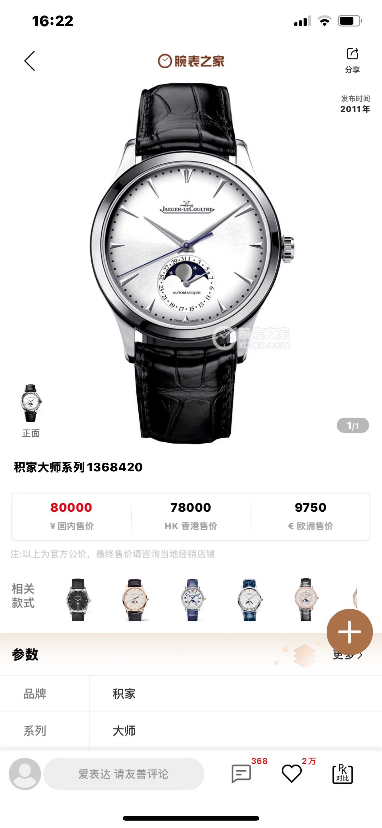 积家Master大师1368420机械男性