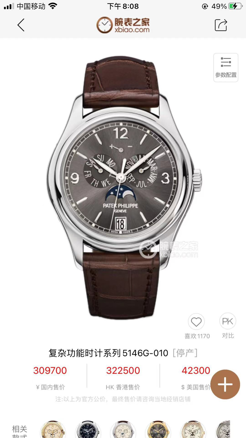 百达翡丽/Patek Philippe 复杂功能时计 5146G-010 自动机械 暂无 39毫米 专柜价368800
