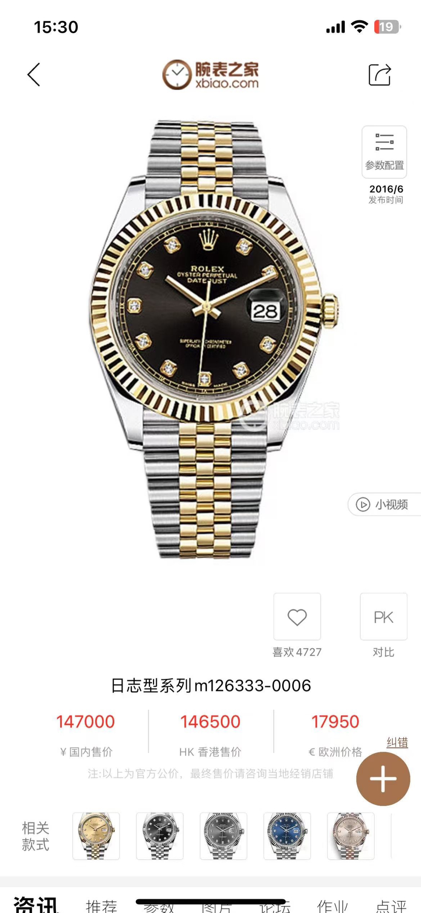 劳力士/Rolex 日志型 m126333-0006 自动上链 黄金钢(蚝式钢与黄金的组合) 41毫米 专柜价147000