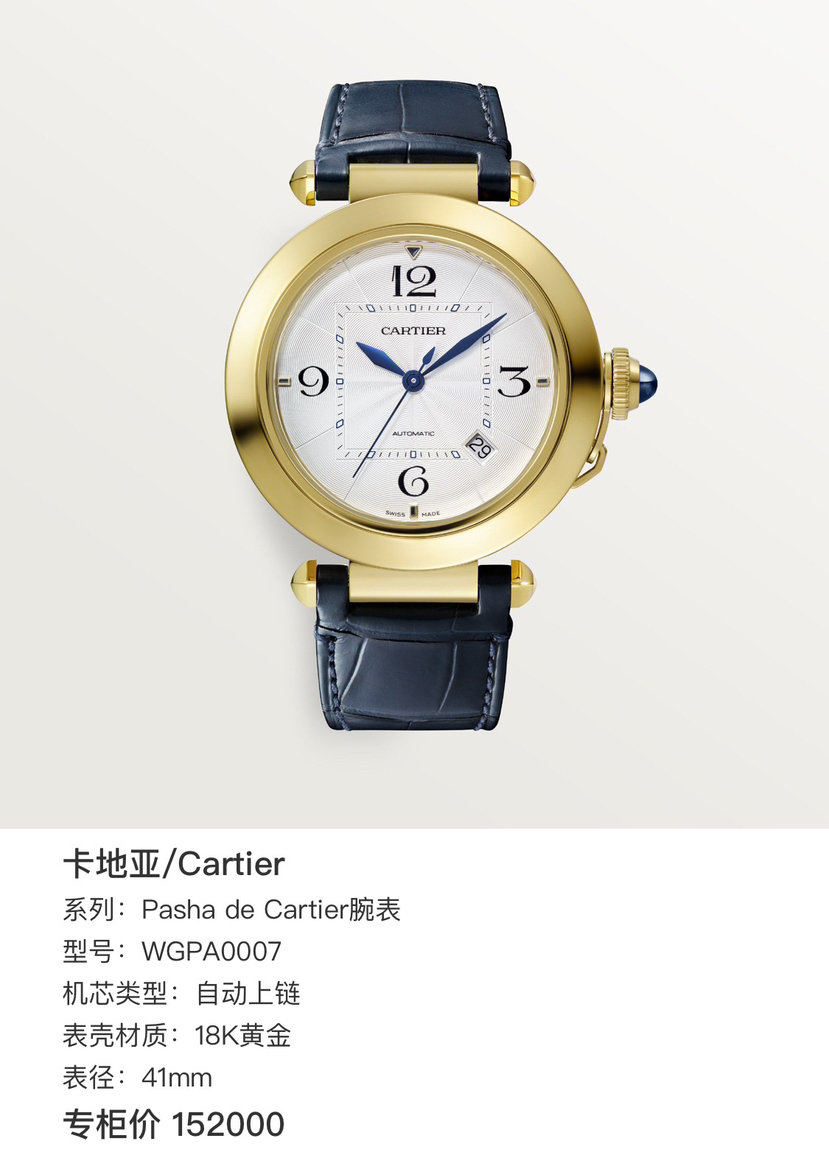 卡地亚/Cartier Pasha de Cartier腕表 WGPA0007 自动上链 18K黄金 41mm 附件:21年卡 专柜价152000