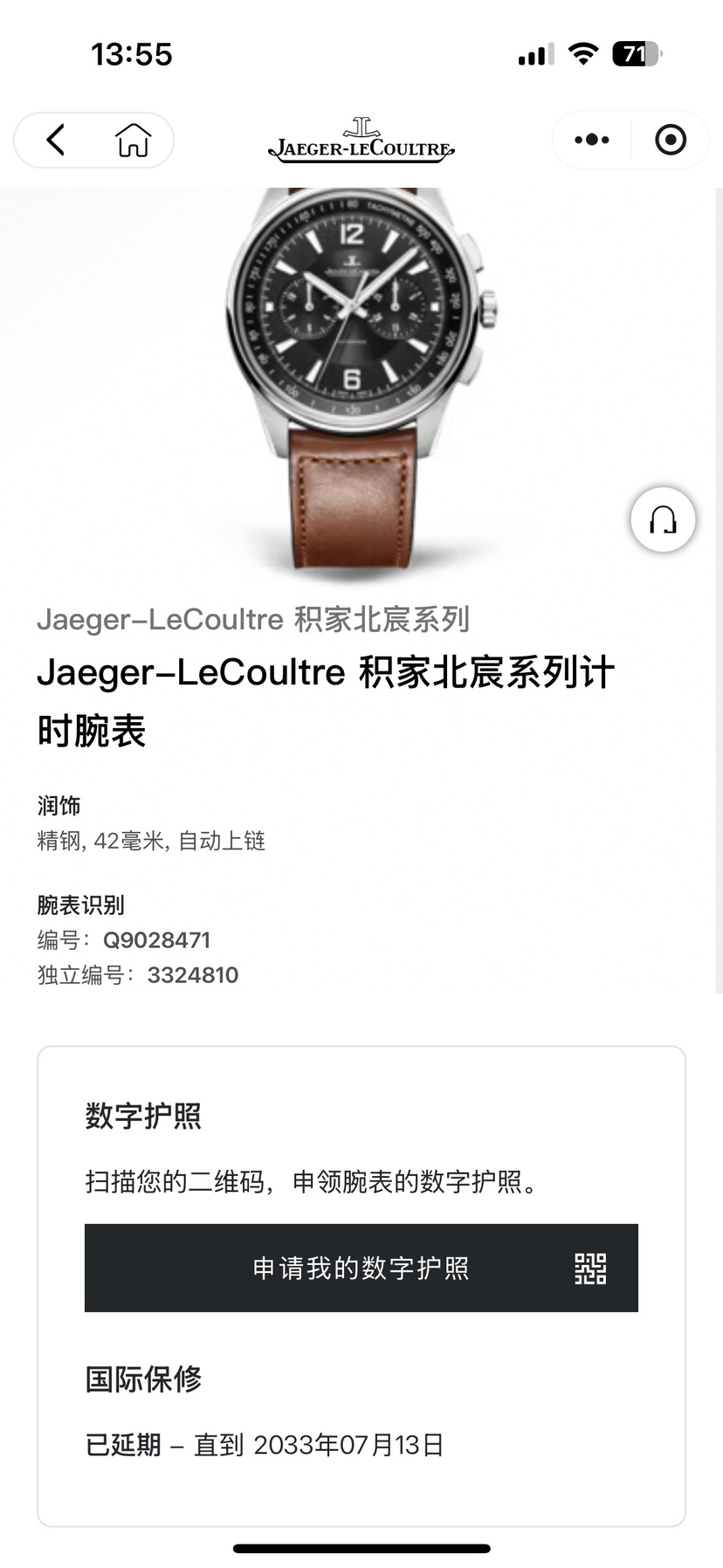 收礼未使用全套25年7月卡积家北宸Q9028471 自动机械黑盘 42表径 专柜价102000 现货好价