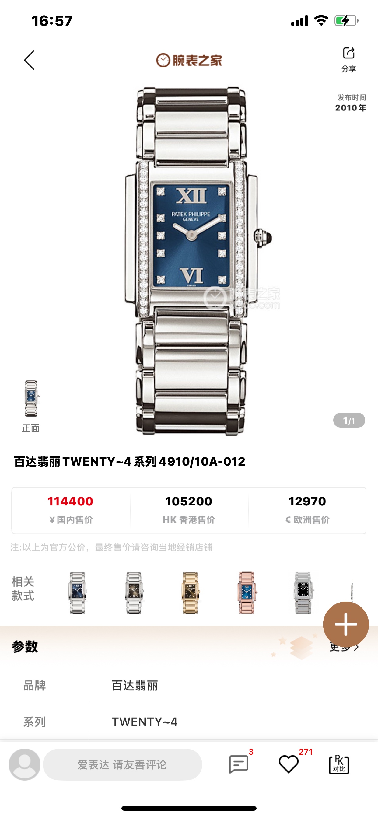 百达翡丽Twenty~44910/10A-012石英女性