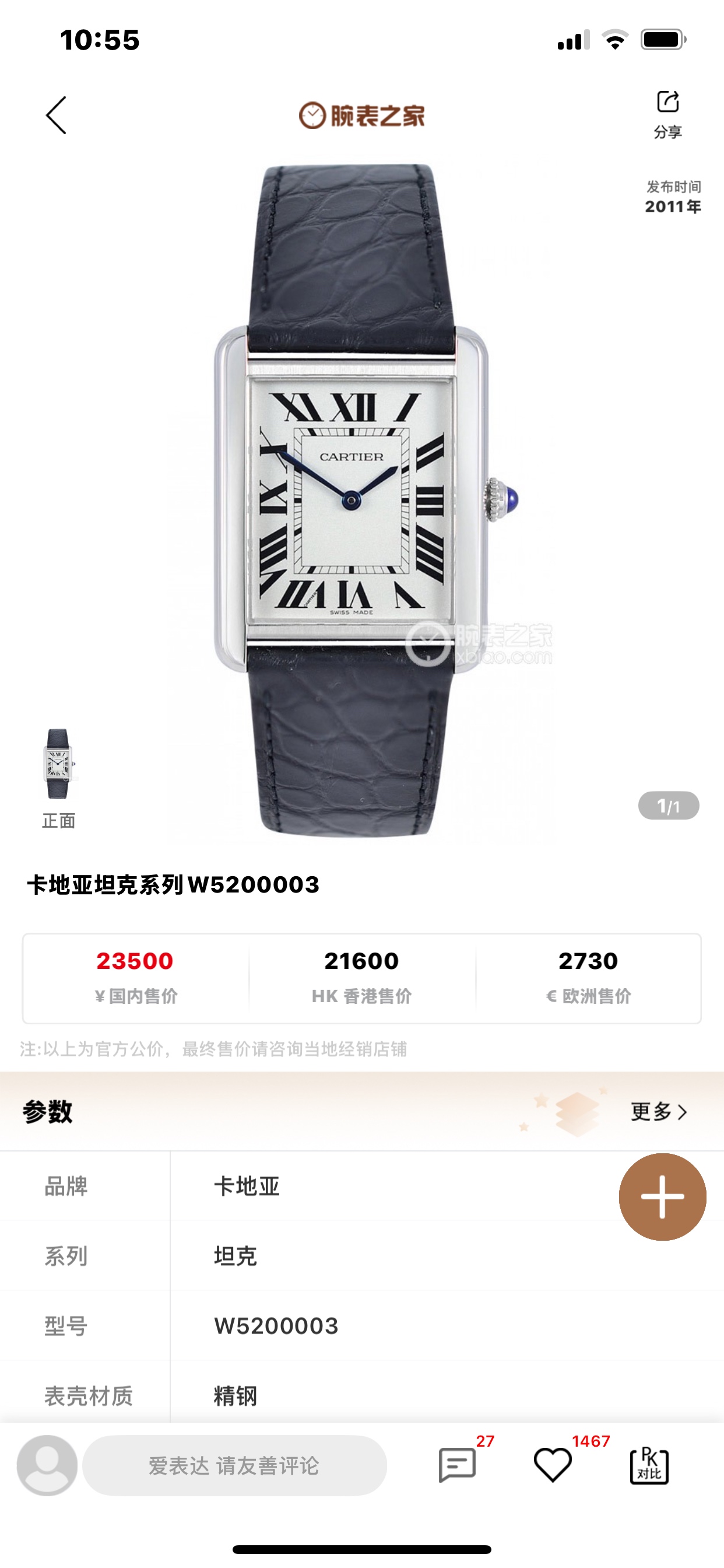 机芯类型:石英机芯 27.4x34.8mm 女士腕表