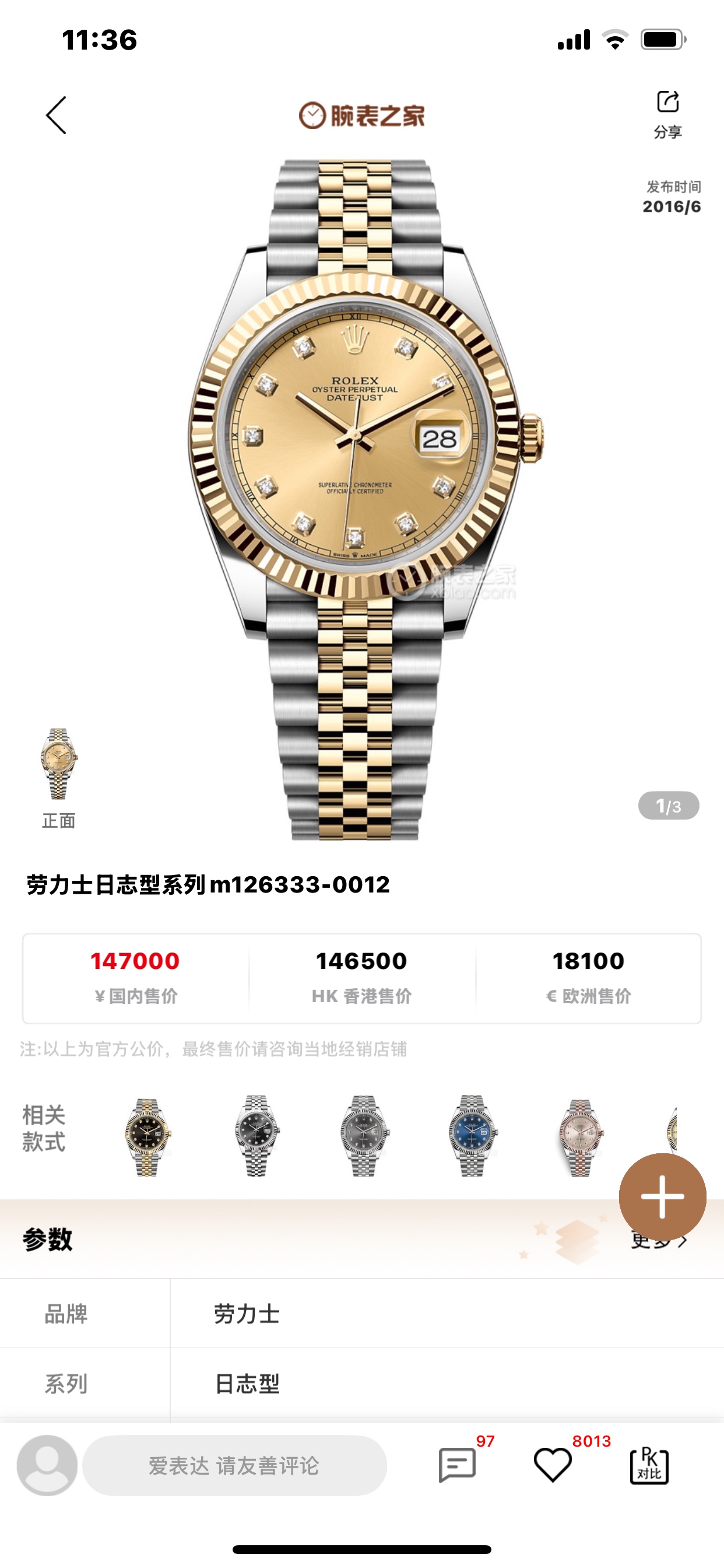 表壳/表带/表扣材质:蚝式钢/18K黄金