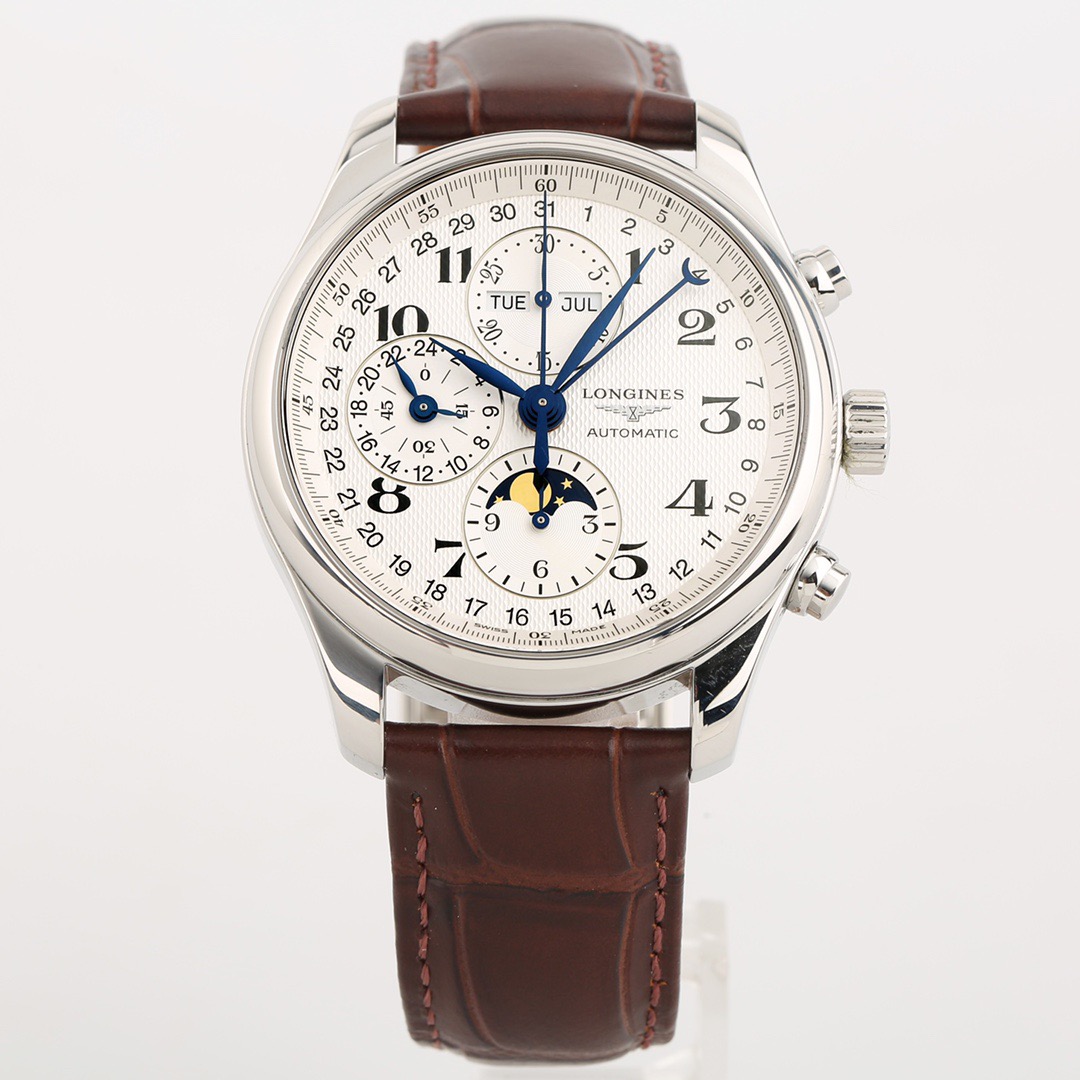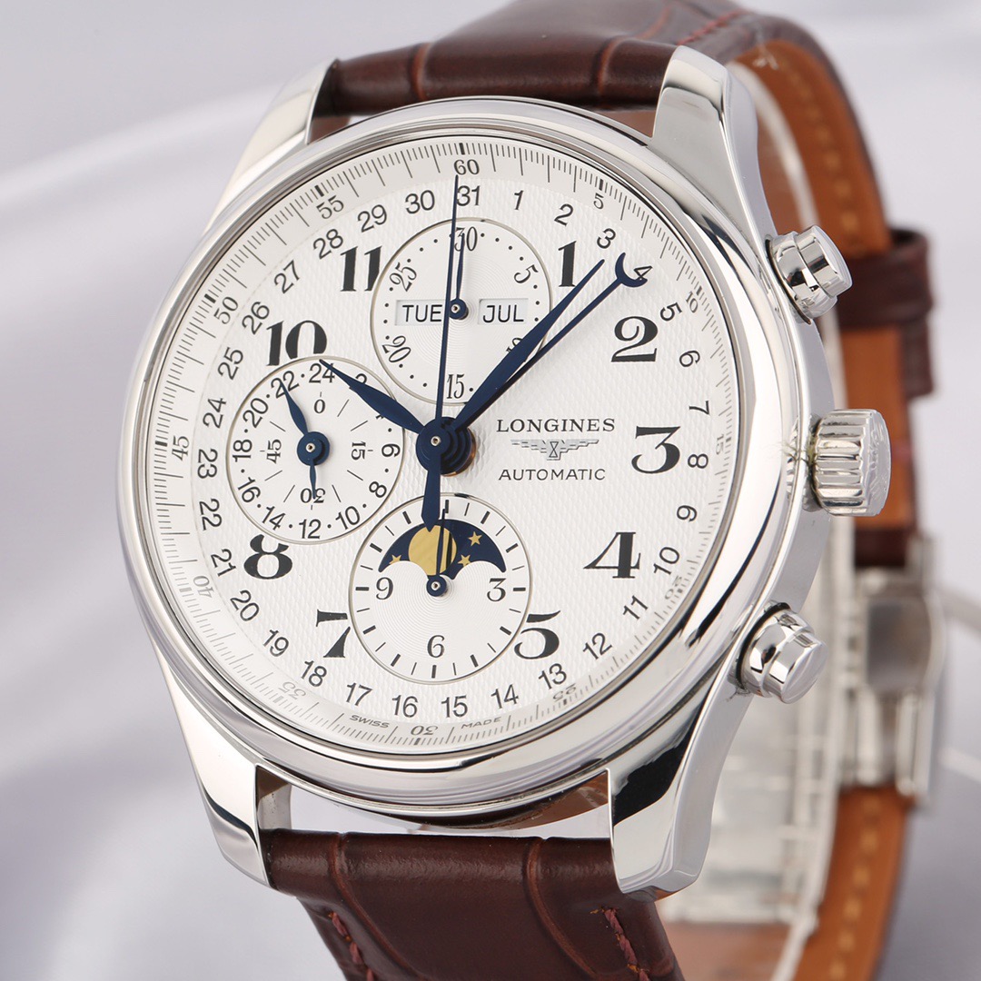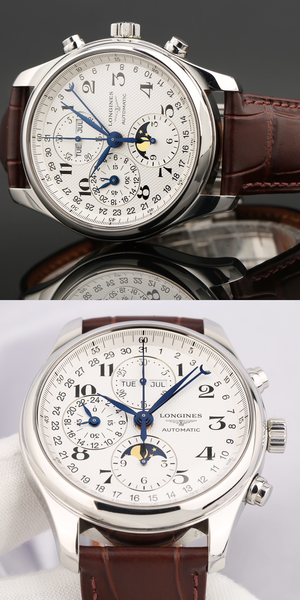 表盘简约典雅的布局、优雅的柳叶针,同时腕表配备有计时功能、星期显示、日期显示以及月份显示功能,足以满足日常的需求。