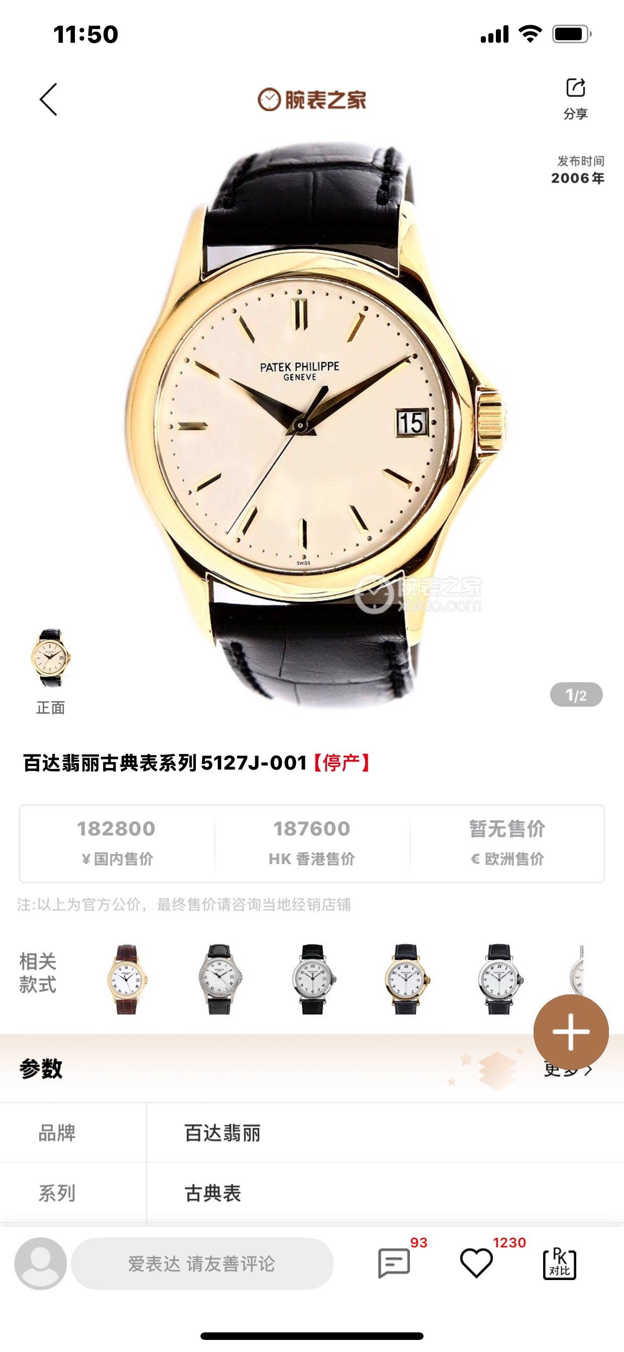 百达翡丽 金表 总重74.1克