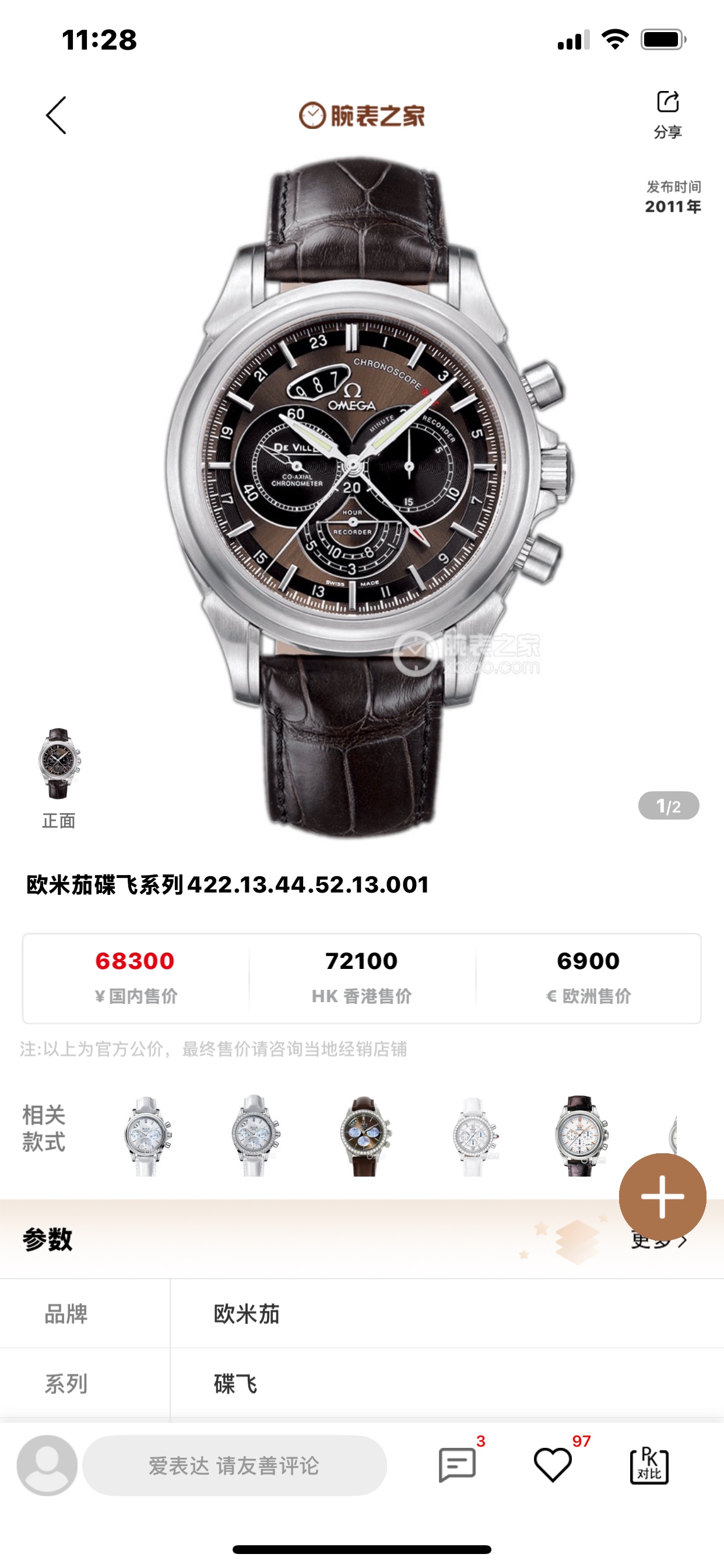 欧米茄碟飞422.13.44.52.13.001机械男性