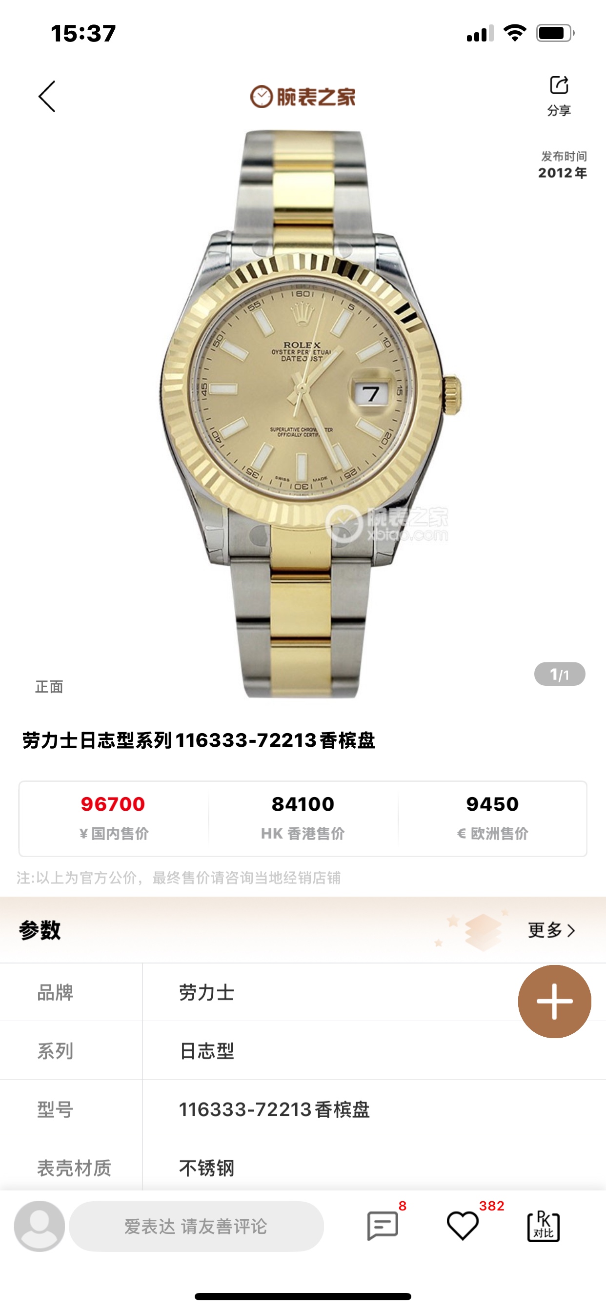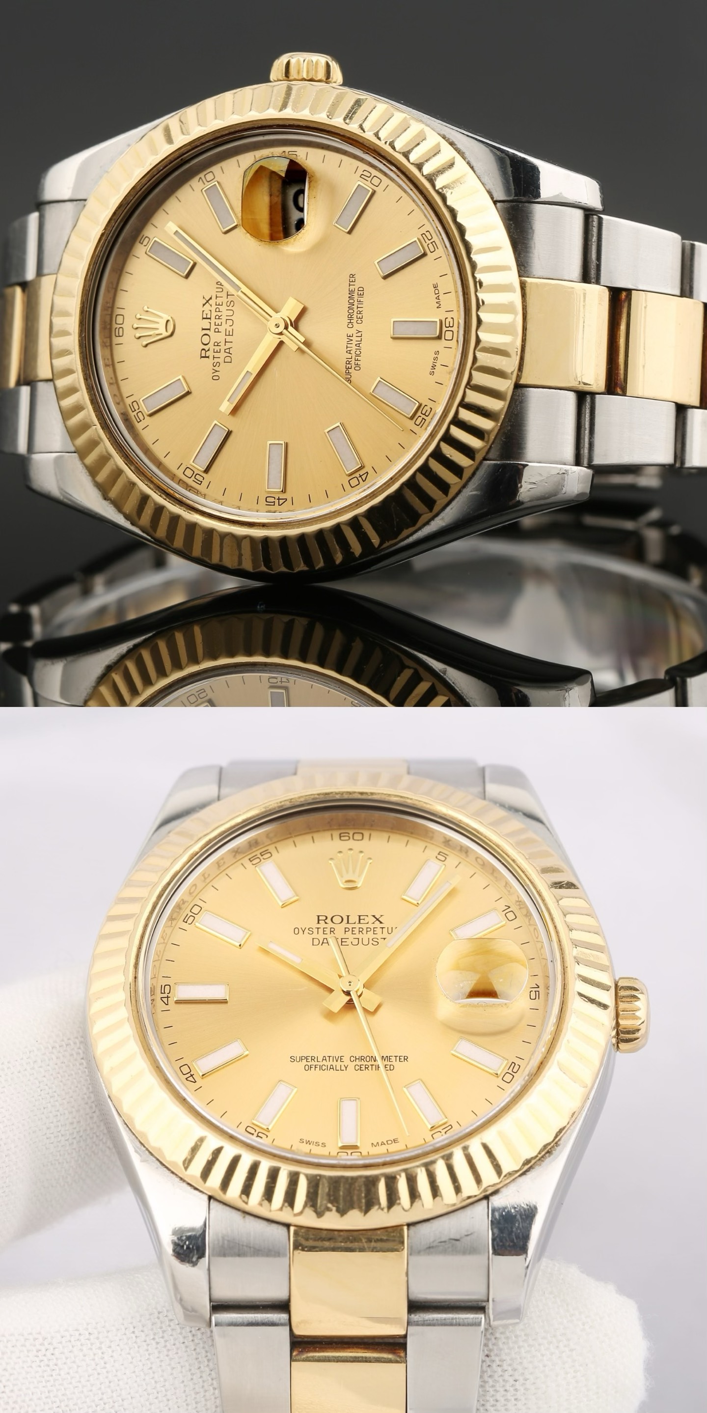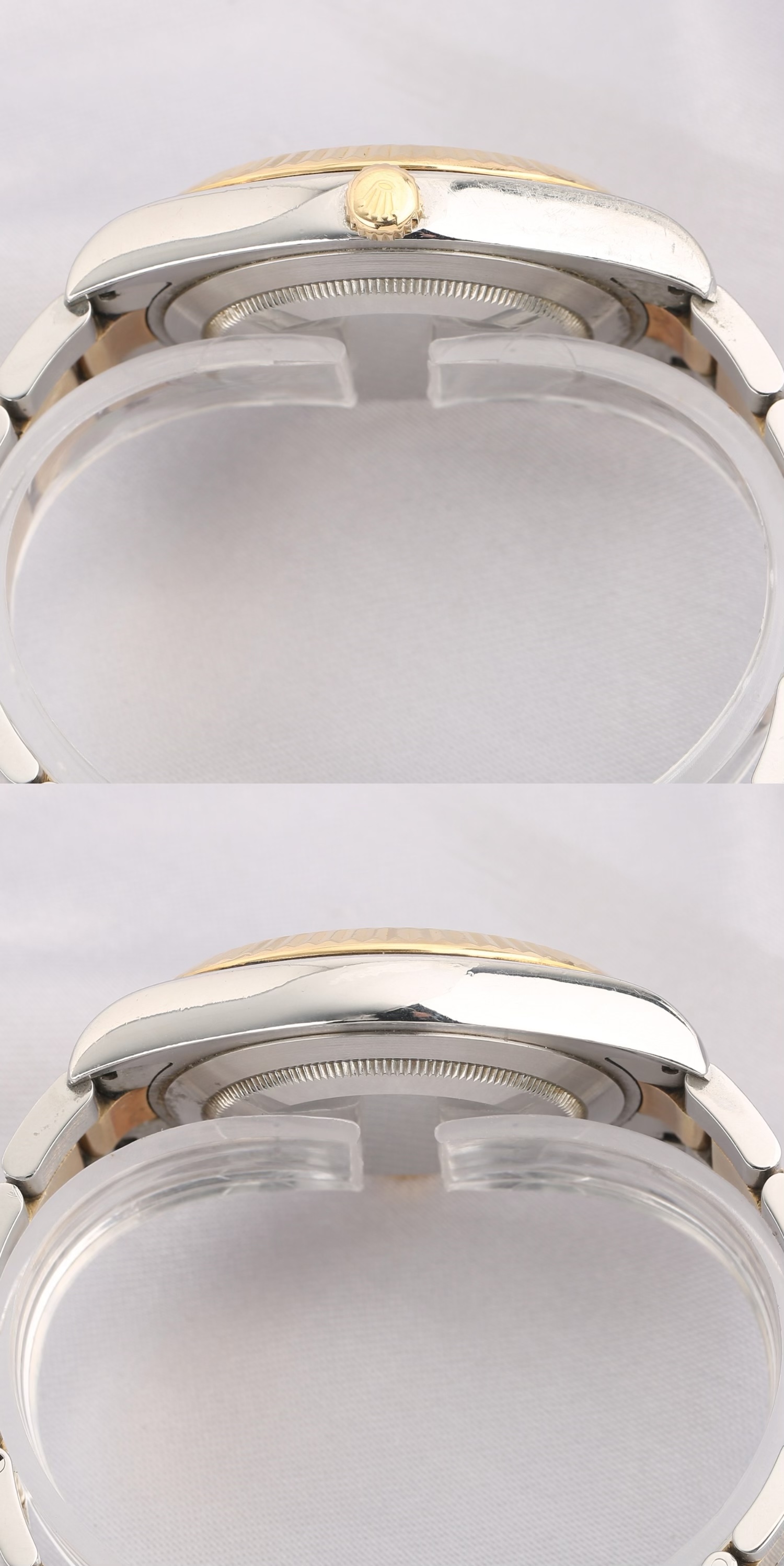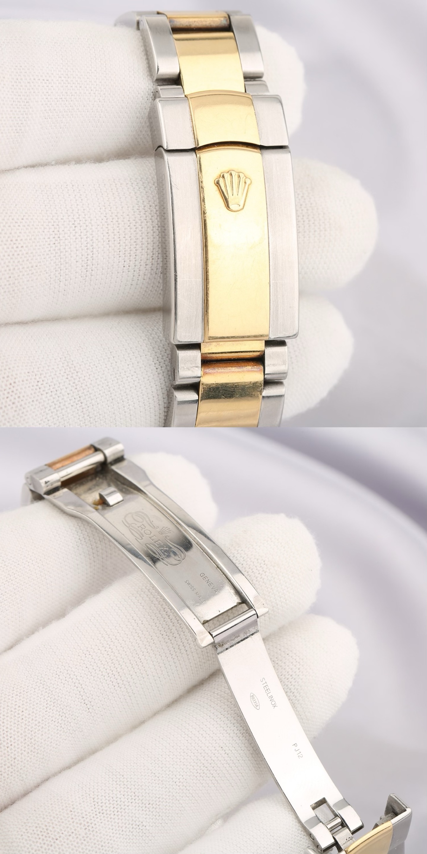 表带/表扣材质:黄金钢(蚝式钢与18k黄金)