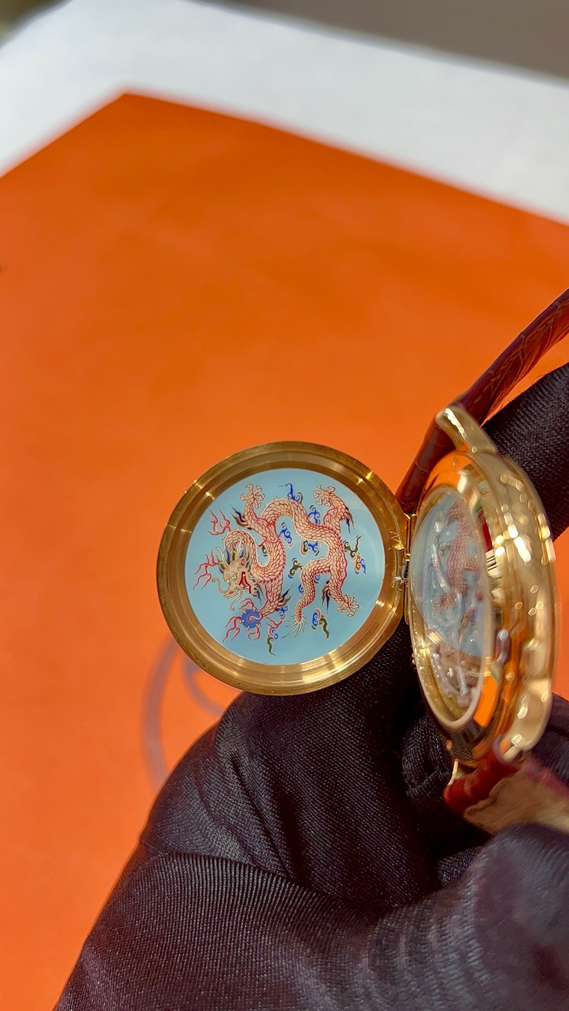 “中国龙”腕表,是品牌极具代表性的一枚军官式表底盖腕表,龙的形象隐匿于表底盖内部,以大明火珐琅手工雕刻打造,全球限量20枚。“中国龙”腕表通过掐丝珐琅工艺勾勒出栩栩如生的龙游九天,异彩纷呈。