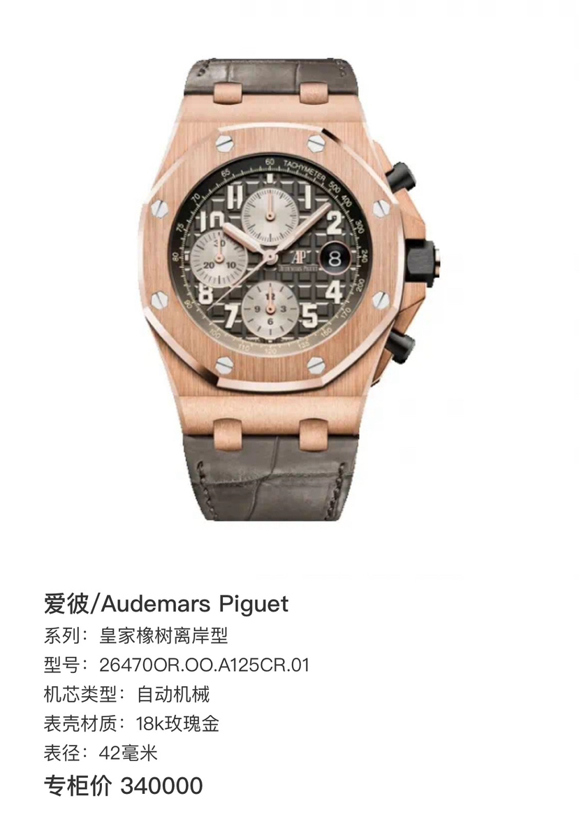 18年表+卡,爱彼/Audemars Piguet 皇家橡树离岸型 26470OR.OO.A125CR.01 自动机械 18k玫瑰金 42毫米 专柜价340000