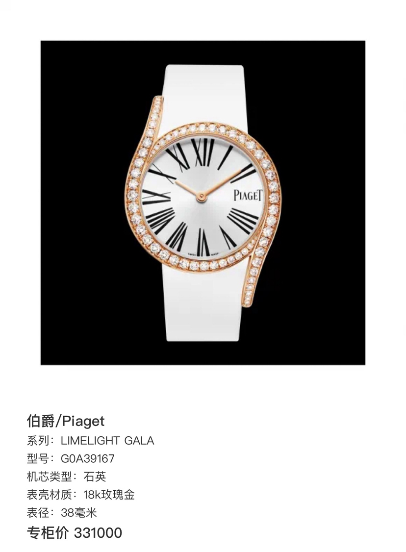 全新全套25年伯爵/Piaget LIMELIGHT GALA G0A39167 石英 18k玫瑰金 38毫米 专柜价331000