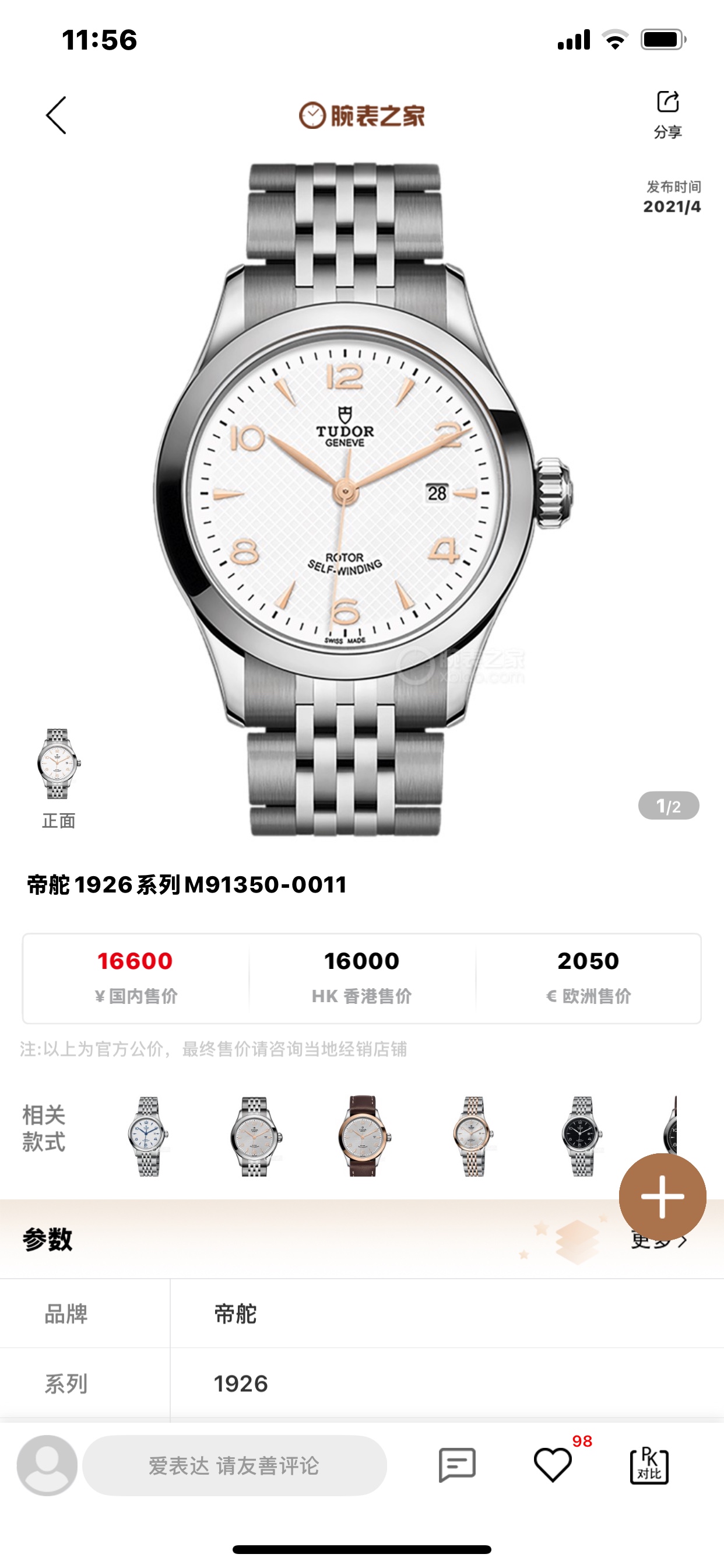 帝舵1926M91350-0011机械女性