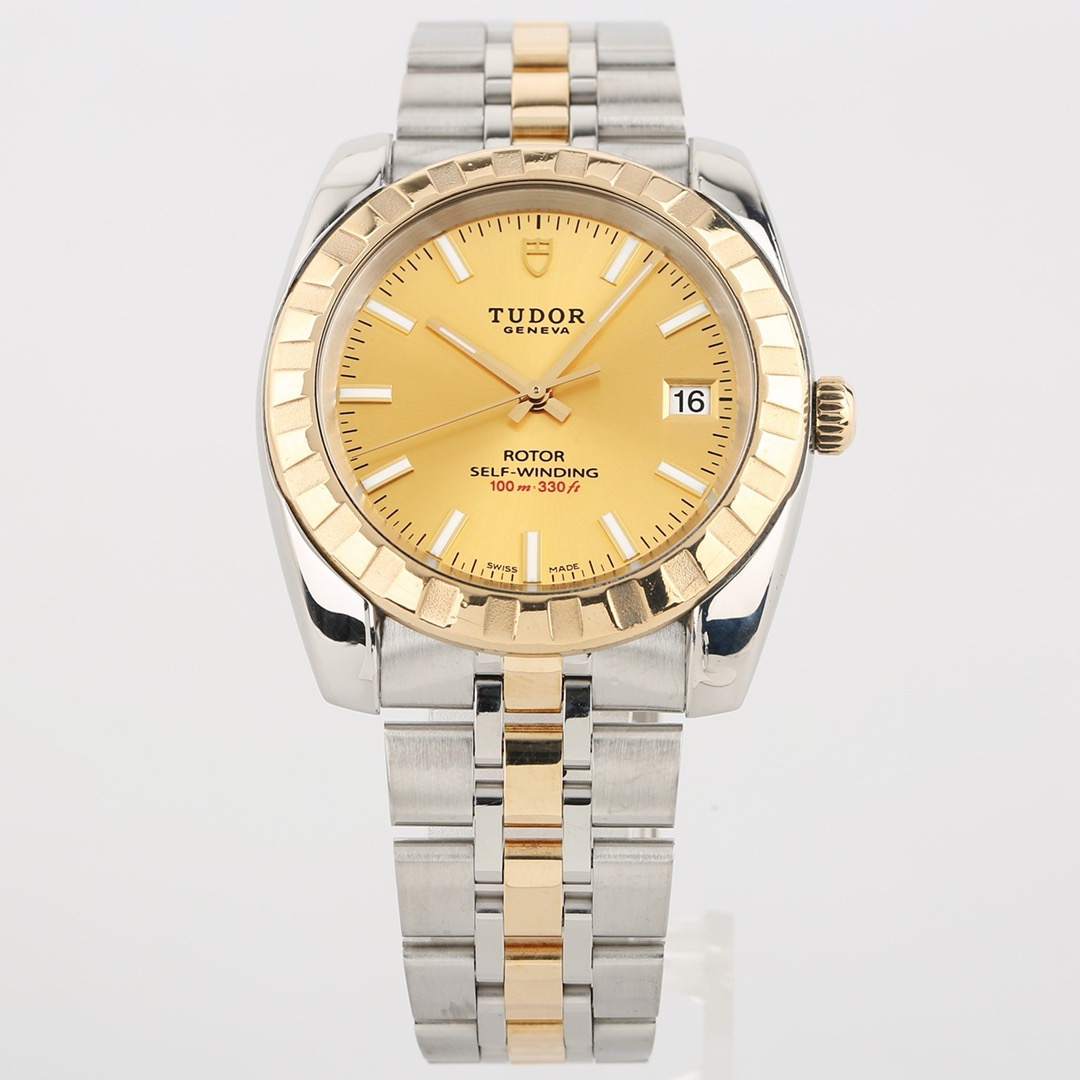 表冠材质:18K黄金旋入式上链表冠,饰以帝舵表标志