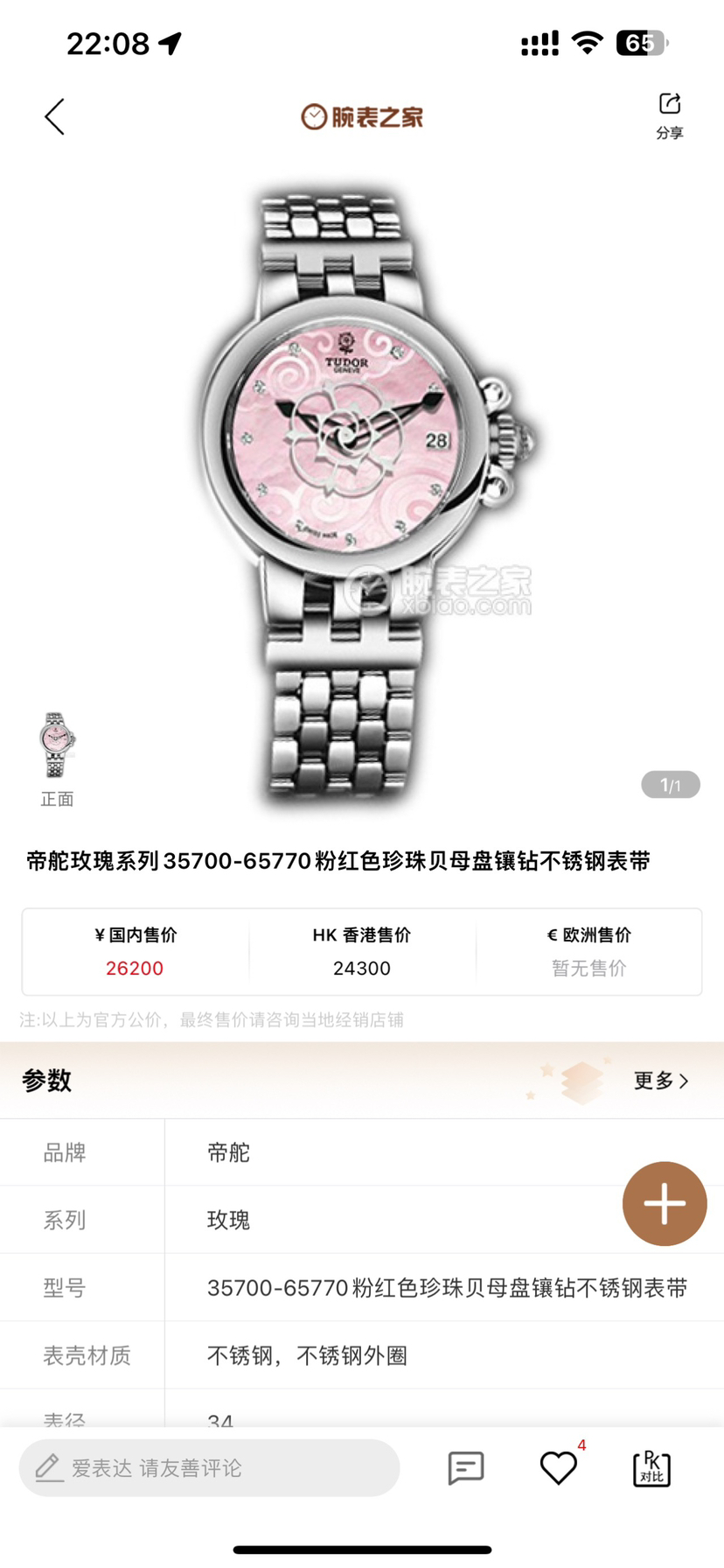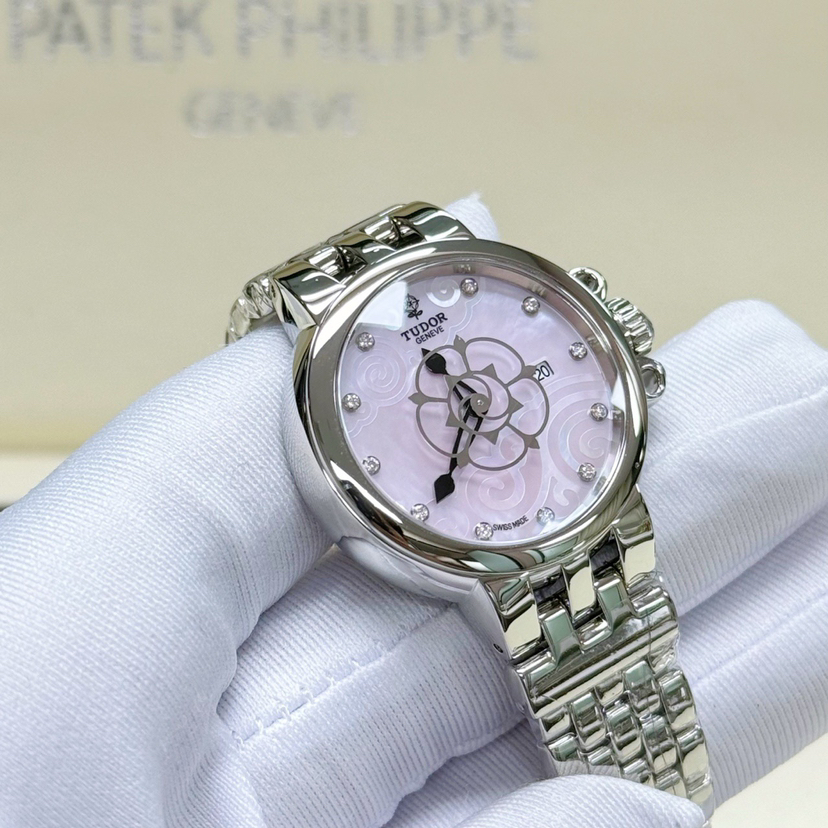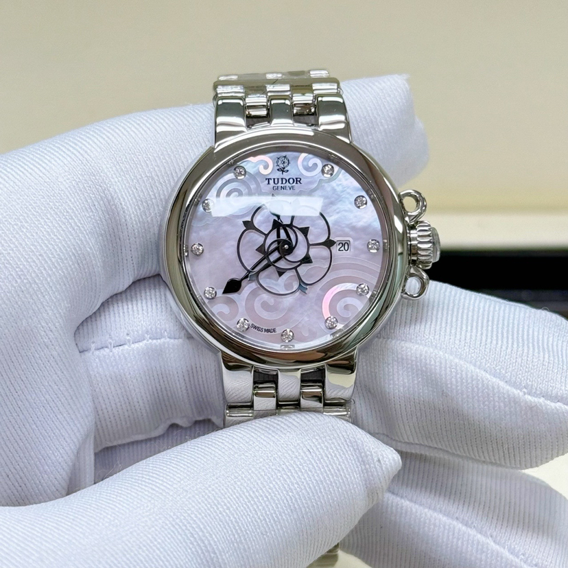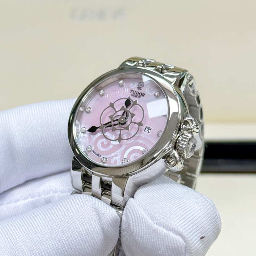 帝舵 TUDOR 35700型号 女士 玫瑰粉贝母盘 带钻 自动机械 公价26200 现货好价出