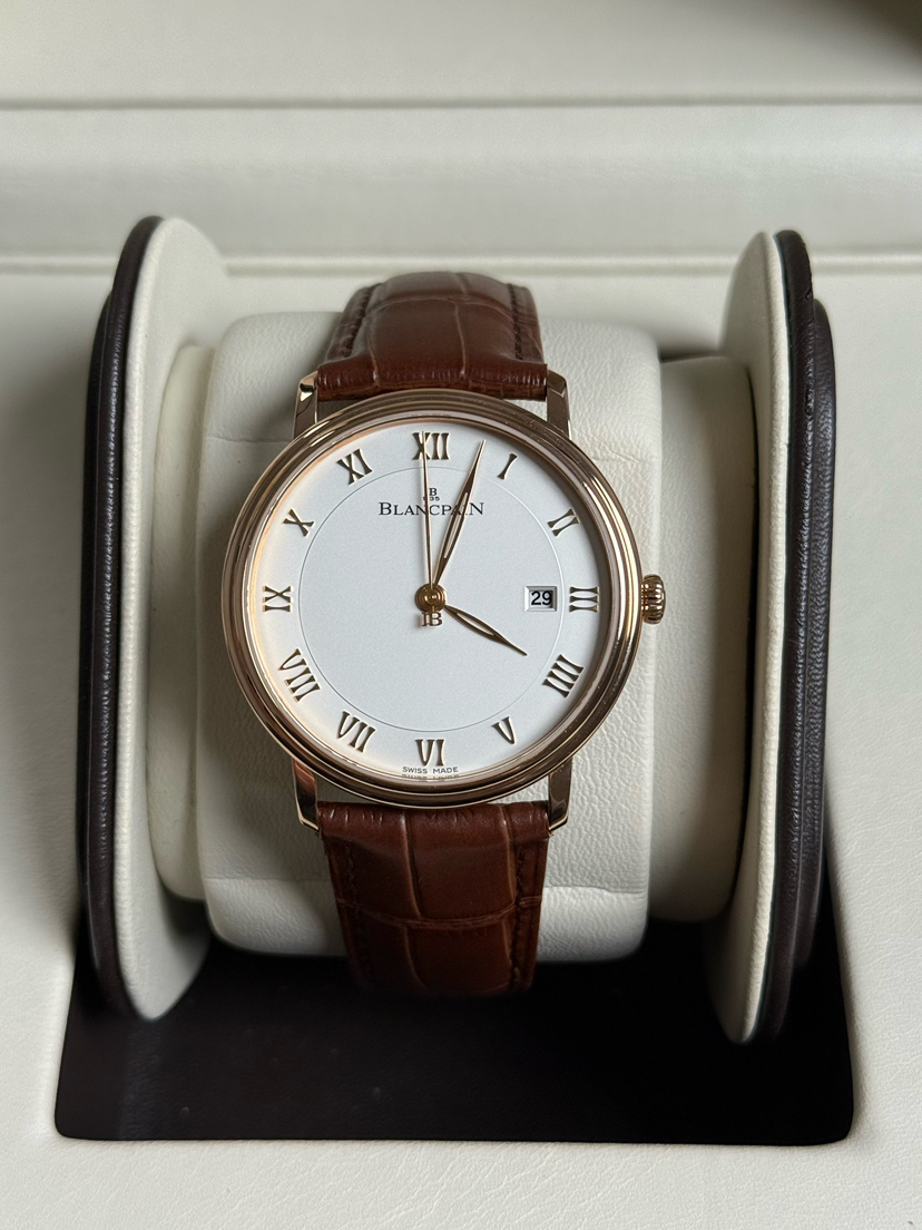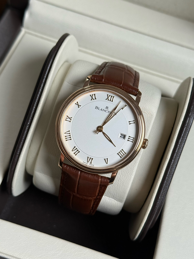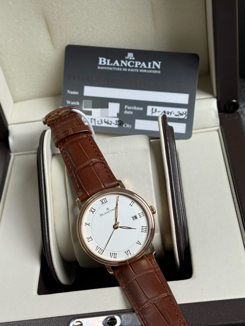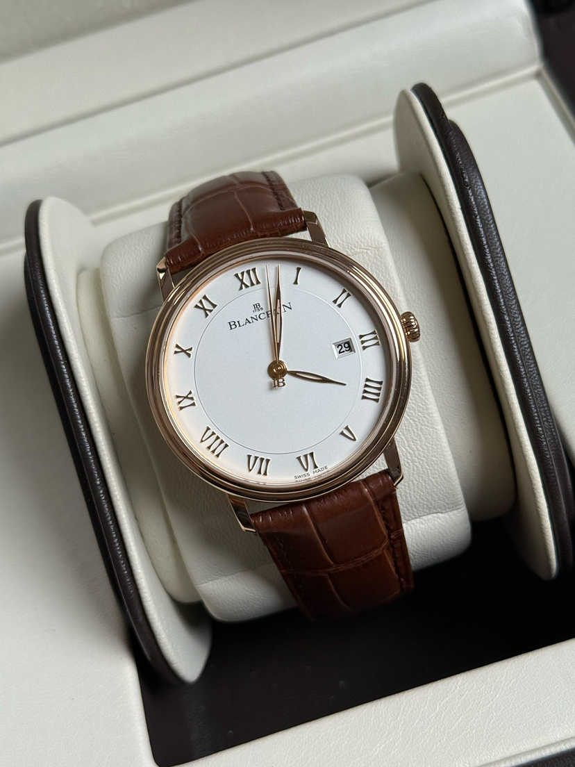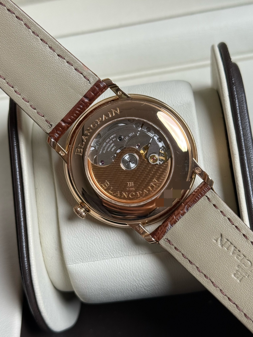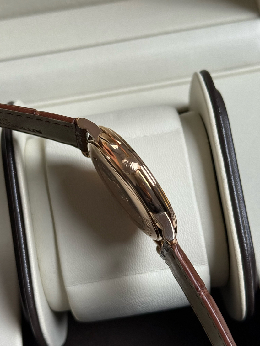 宝珀6651玫瑰金,宝珀经典系列6651-3642-55B,玫瑰金白盘,大气有质感,宝珀金表不出错的入门款,背透机芯,动储100小时,折叠扣,公价177000。23年保卡无盒,现货好价!
