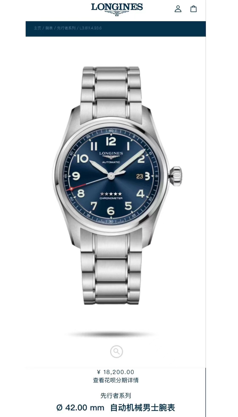 浪琴/Longines 先行者系列 L3.811.4.93.6 自动上链机械机芯 精钢 42.00mm 附件:25年全套 专柜价19500