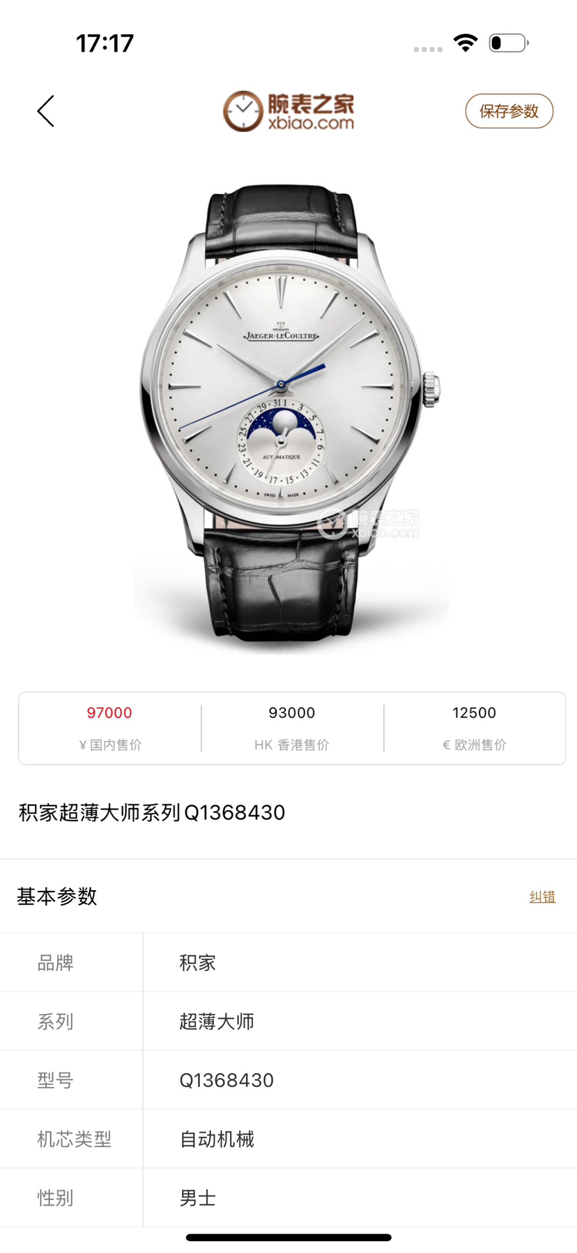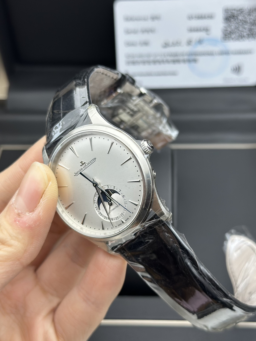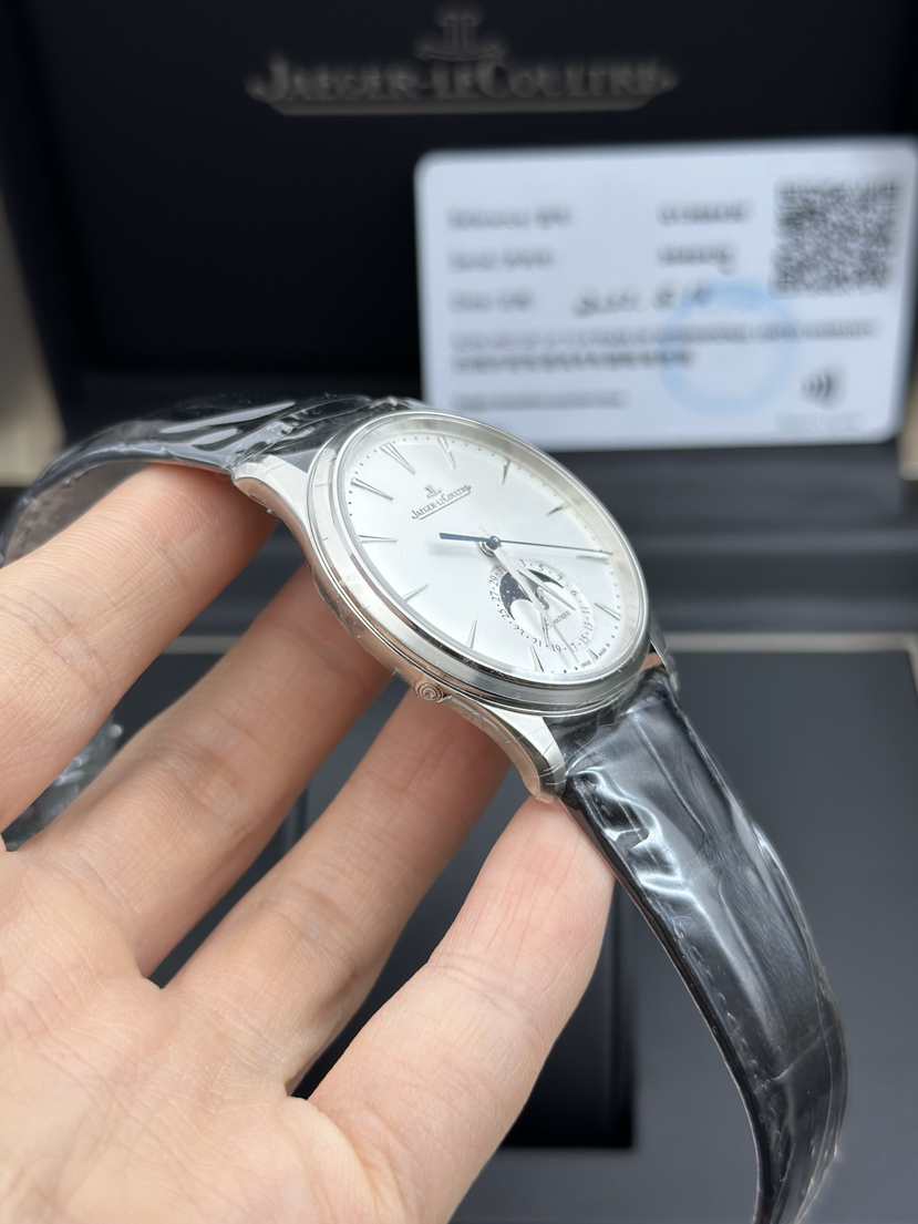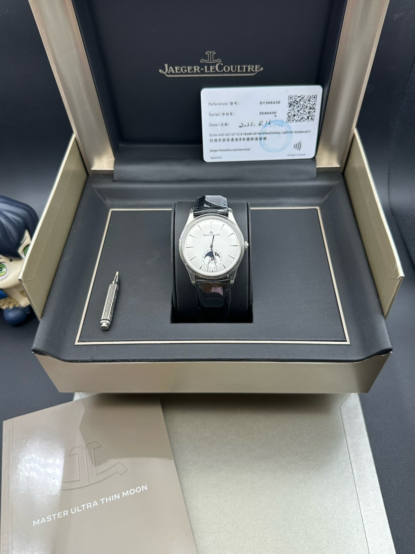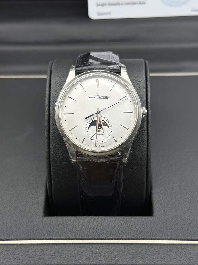 积家 大师系列 Q1368430 男士自动机械腕表 表径39mm 精钢材质 日期、月相显示功能 新款大师月相 超级大热门表款 公价97000 2023年11月,新款盒子全新全膜全套未使用品 已8年延保至2030年 现货特价带走!