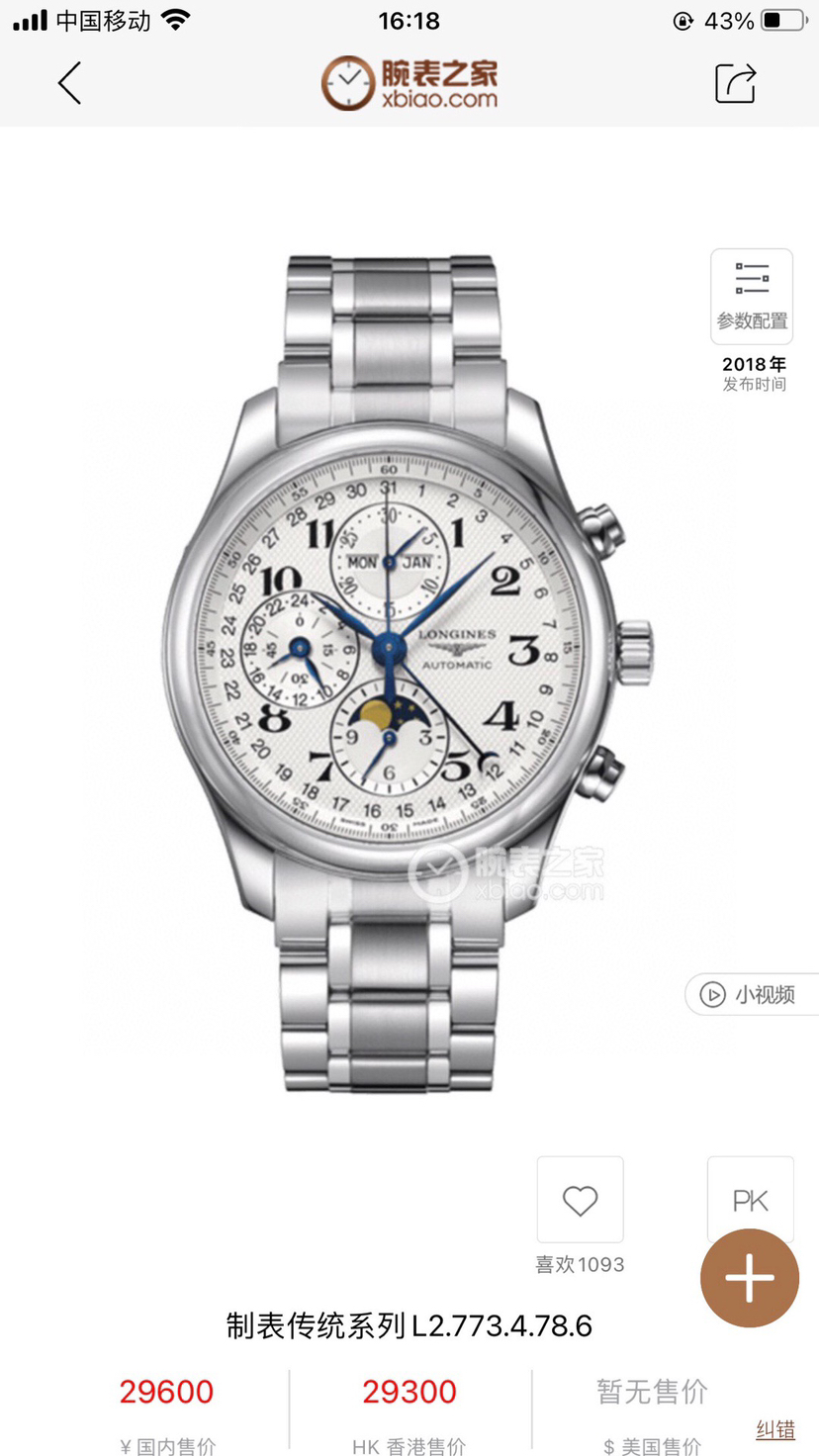浪琴/Longines 浪琴表名匠系列 L2.773.4.78.6 自动上链机械机芯 精钢 42.00mm 附件:极品全套专柜价31000