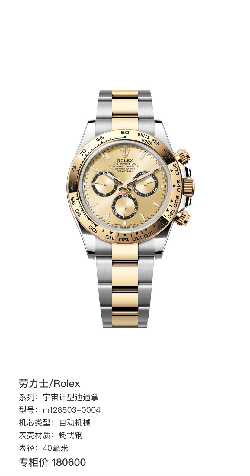 劳力士宇宙计型迪通拿 香槟间金迪 M126503-0004自动机械男性