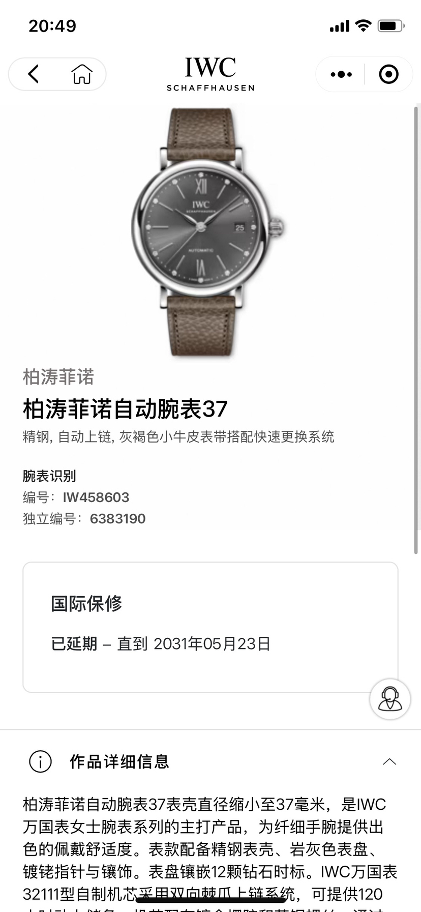 万国/IWC 柏涛菲诺系列 IW458603 表径:37毫米 附件:23年单表 新款背透 已延保 专柜价48600