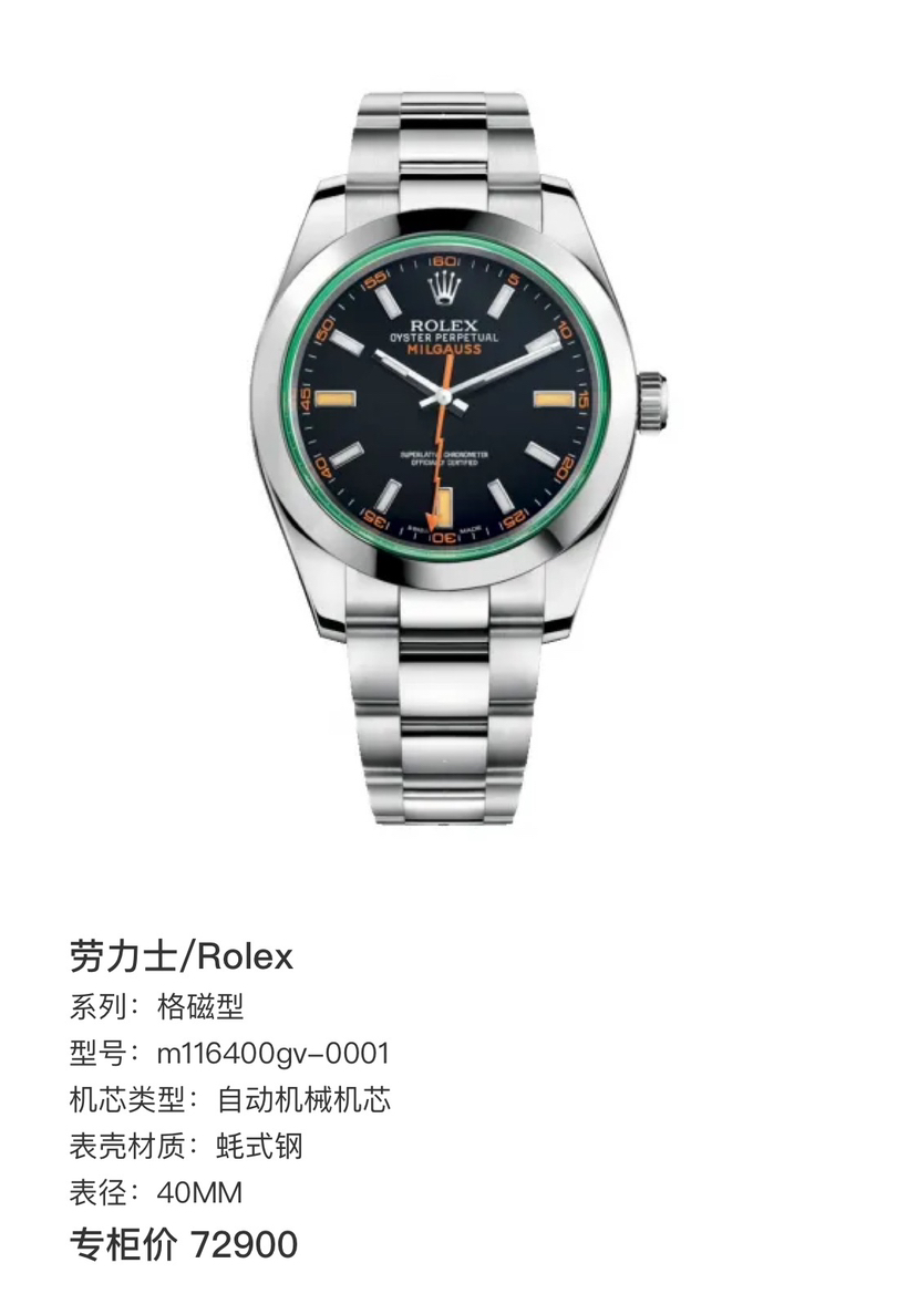 劳力士格磁型MILGAUSS 绿玻璃 M116400GV-0001自动机械男性