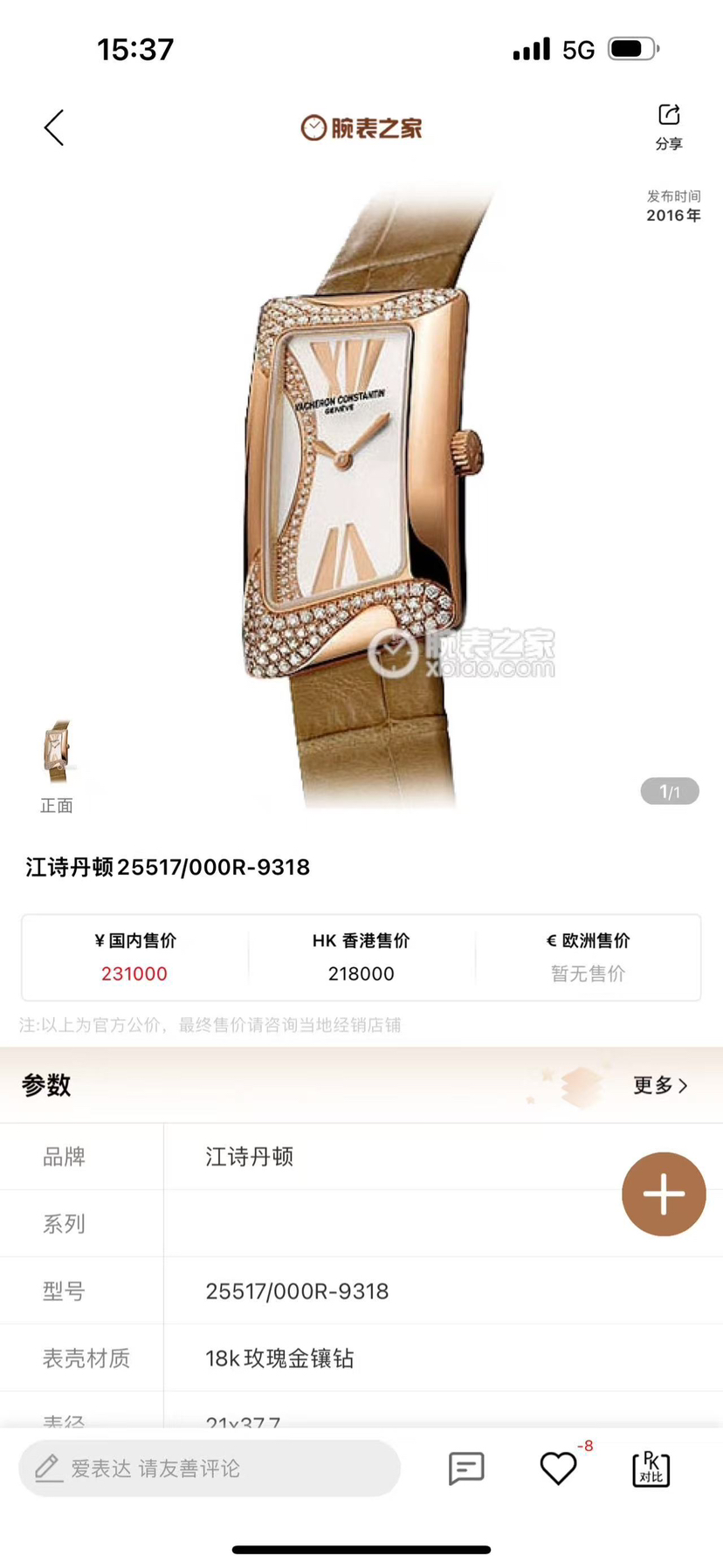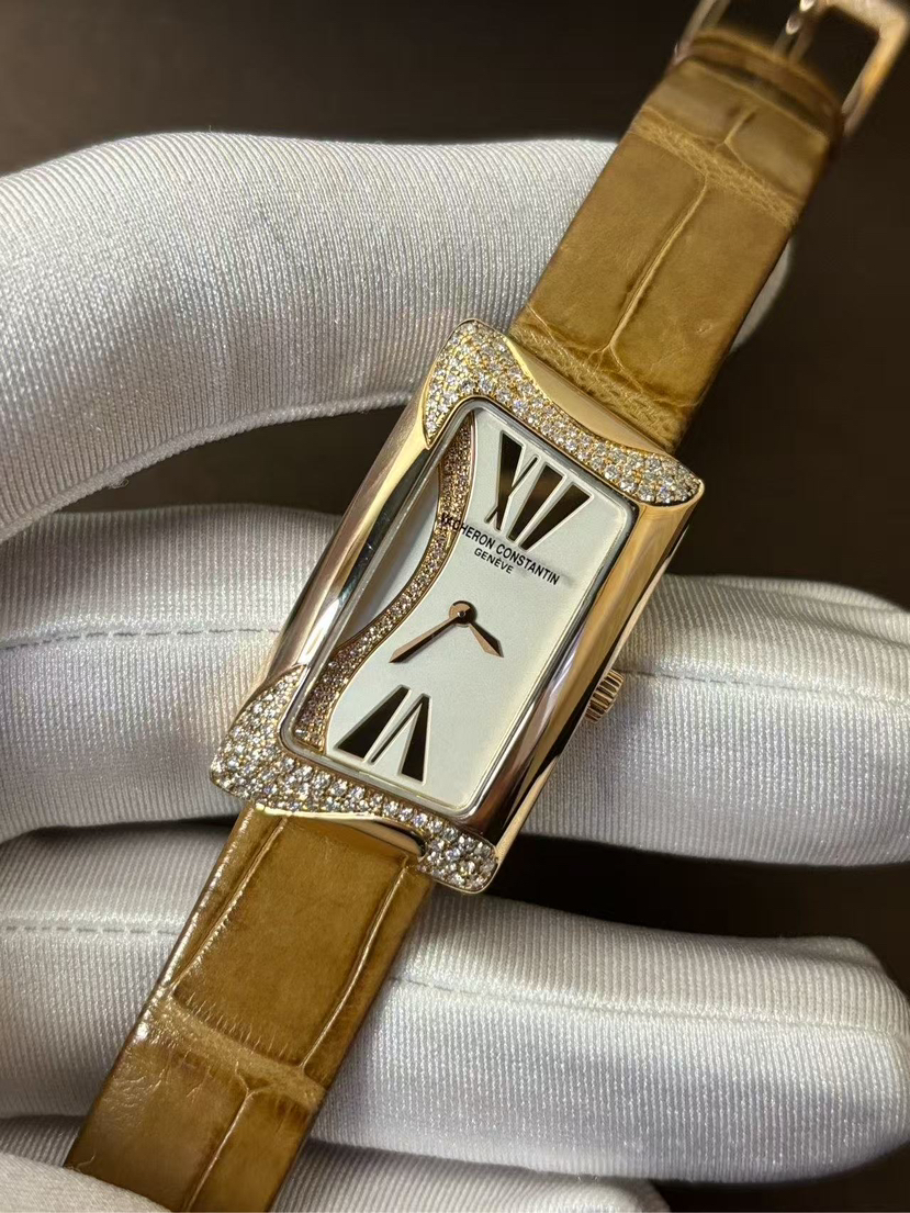 江诗丹顿/Vacheron Constantin 1972系列 25517/000R-9318 石英机芯女士腕表,表径21x37.7毫米 整表18k玫瑰金材质 原钻 设计优美 大女主气质 针扣 单表成色好 专柜价231000 现好价得